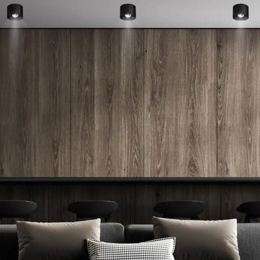 - Luz general: Lo primero es asegurarte de que toda la habitación esté bien iluminada de forma uniforme. Los plafones o focos empotrados distribuidos por el techo son una gran opción. Si puedes, evita lámparas colgantes grandes que puedan crear sombras sobre los muebles.
