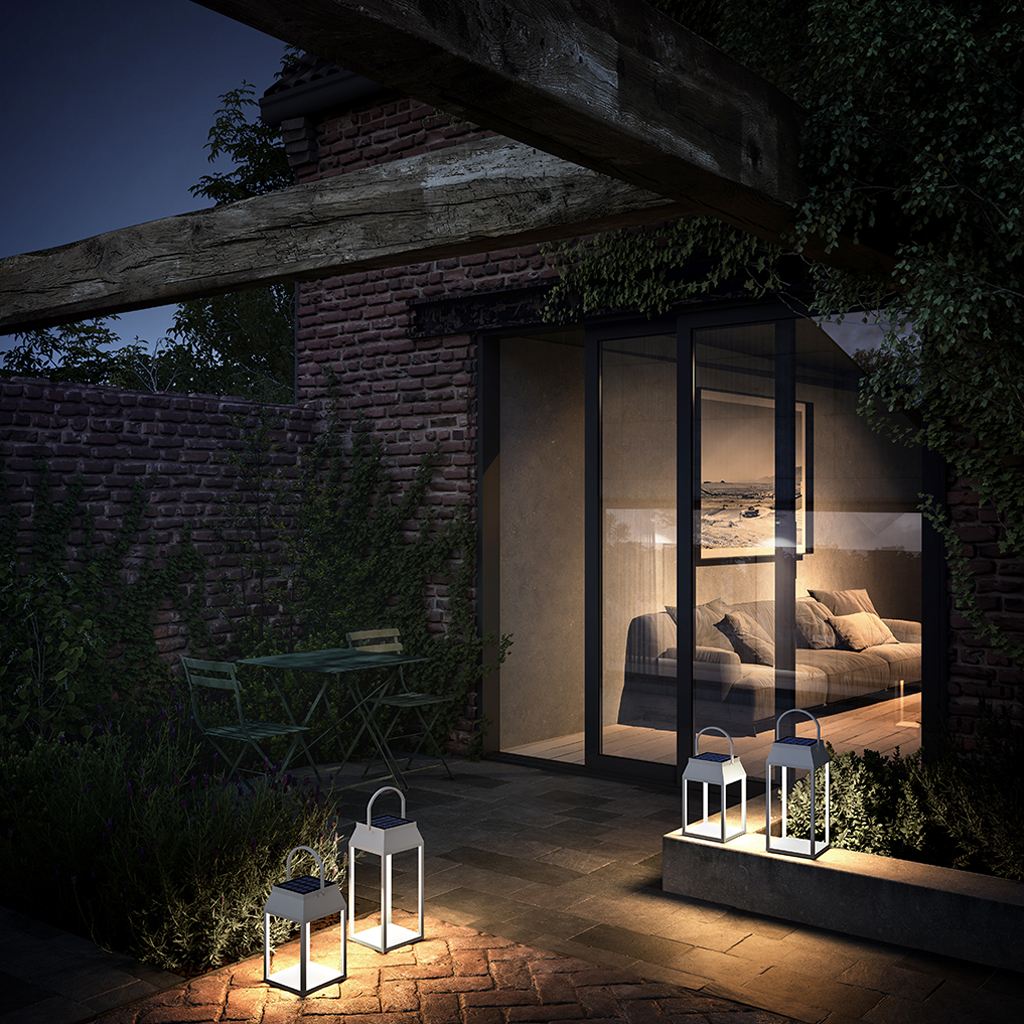 Además de colocar lámparas colgantes en las zonas de descanso, también es importante señalizar zonas de paso como la entrada al jardín, vivienda o garaje, una de las mejores opciones para hacerlo es mediante el uso de balizas solares o lámparas de pie para exteriores.
