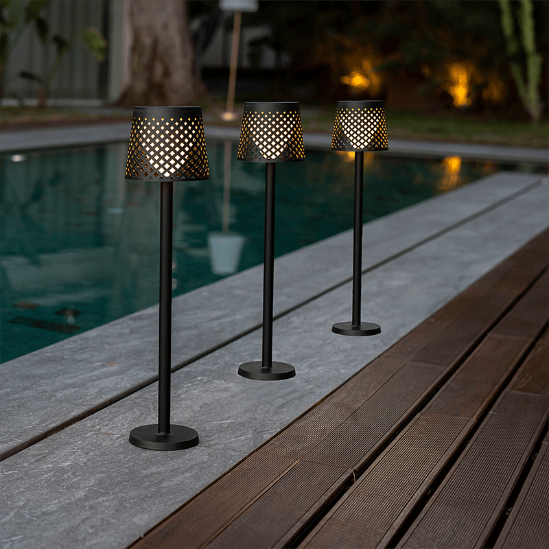 Si deseas darle un cierto ambiente mágico y luminoso a tu jardín, tenemos la opción perfecta, lámparas solares de pie con pica incluida para poder clavarlas en el propio césped. Aunque si deseas colocarlas en otros espacios como escaleras, porches o al lado de la piscina también podrás encontrar lámparas de pie con unos diseños muy novedosos que le aportarán un extra de estilo a tu jardín y son a prueba de salpicaduras.