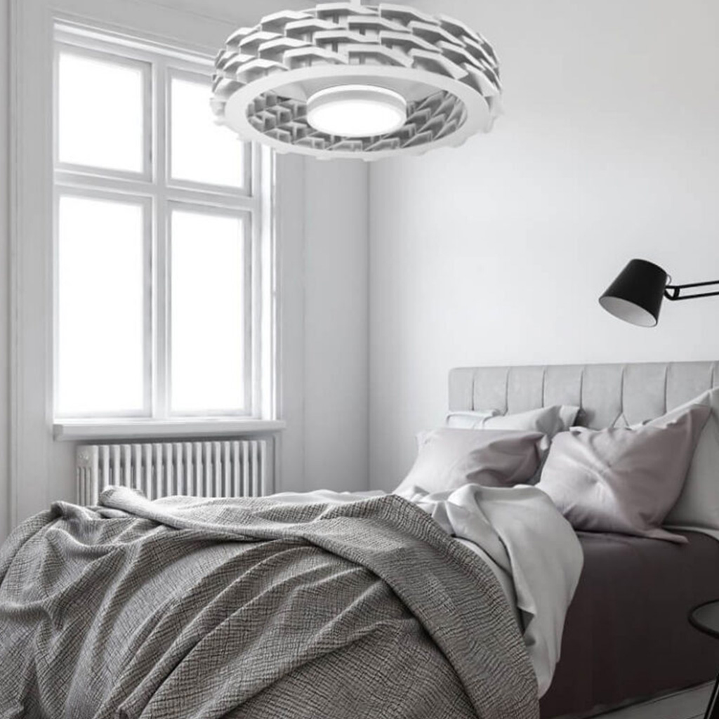 El ventilador Rubik es un modelo innovador y diferente que incorpora una tecnología que absorbe el aire desde la parte central creando una distribución homogénea del mismo en el espacio. Tiene un motor DC que es más silencioso y eficiente y tiene una doble luz que permite dinamizar la temperatura de color de cálido a frío.