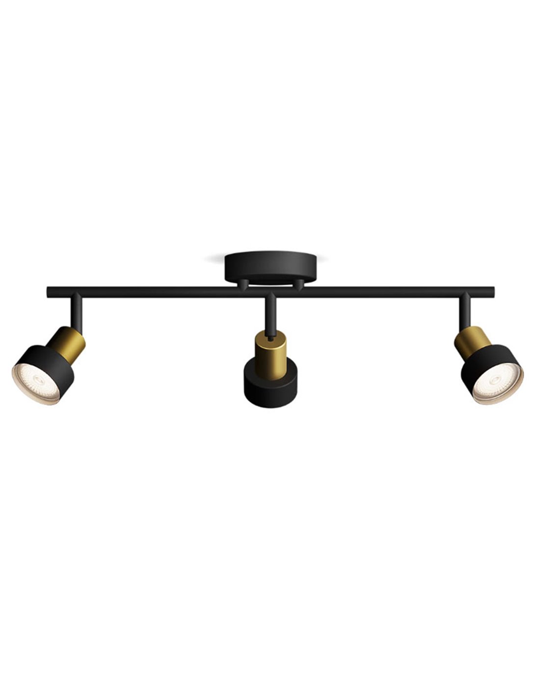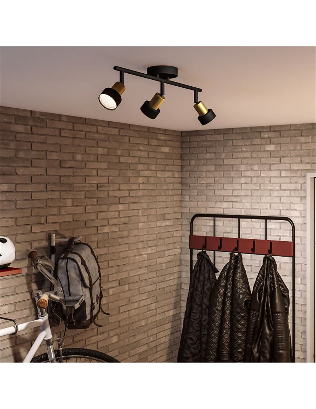 3er Spotleiste CONDUIT in Schwarz und Messing. Kompatibel mit 3xGU10 Leuchten (nicht im Lieferumfang enthalten). Installationssystem ClickFix für eine schnelle und einfache Montage.