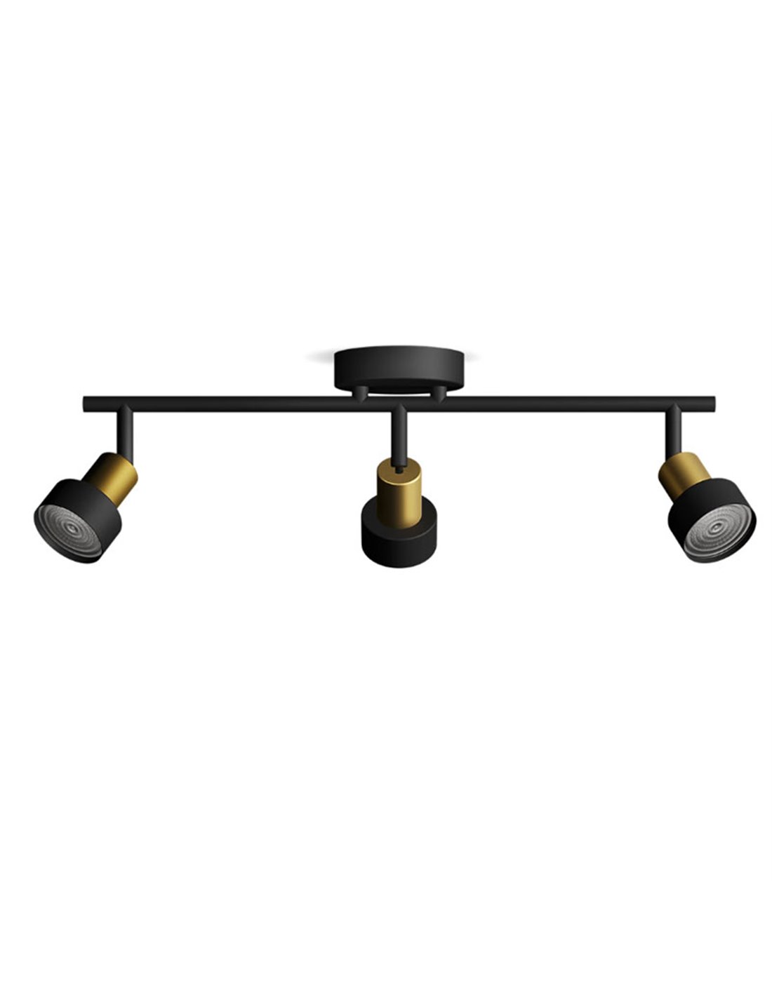 Die 3er Spotleiste CONDUIT kombiniert ein elegantes Design in Schwarz und Messing mit der neuesten Beleuchtungstechnologie, ideal für alle, die einen Hauch von Stil in ihren Räumen suchen. Hergestellt aus hochwertigen Materialien, ist diese Leiste perfekt geeignet, um jeden Raum mit modernem und industrialisiertem Stil zu beleuchten und hebt sich durch ihre Vielseitigkeit und zeitgenössisches Design hervor.