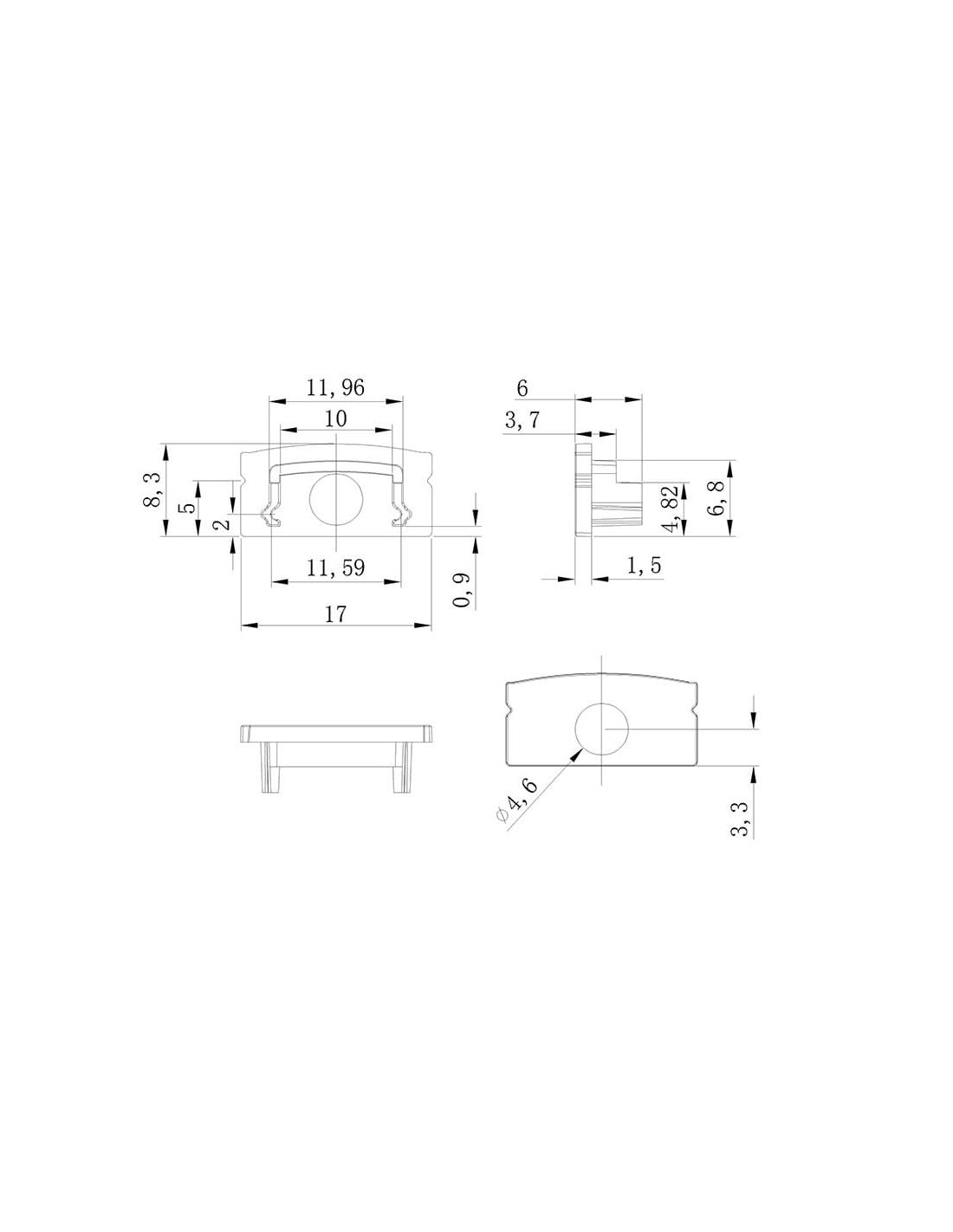 Abdeckung mit Loch für das Ende des schwarzen Aluminiumprofils 2000x17.1x8.5mm - LED STRIPS - von Mantra