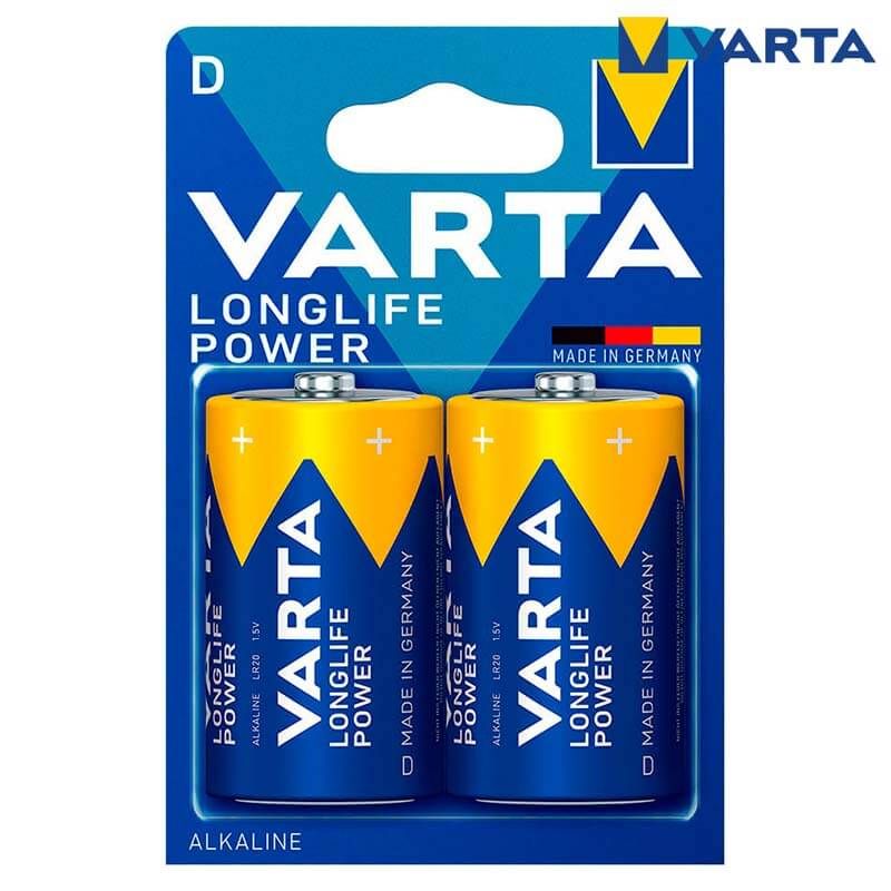 Alkali-Batterie LR20 Typ D von Varta Modell Longlife Power, ist die langlebige Serie von Varta. Diese Batterie hat einen Durchmesser von 34,2 mm und eine Länge von 61,5 mm.