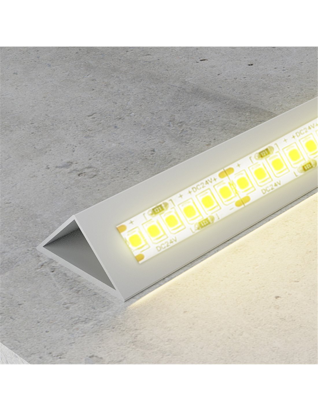 TRIANGULARES Profil für LED-Streifen, das das Finish verbessert, die Installation schützt und hilft, ein gleichmäßigeres Licht zu erreichen.