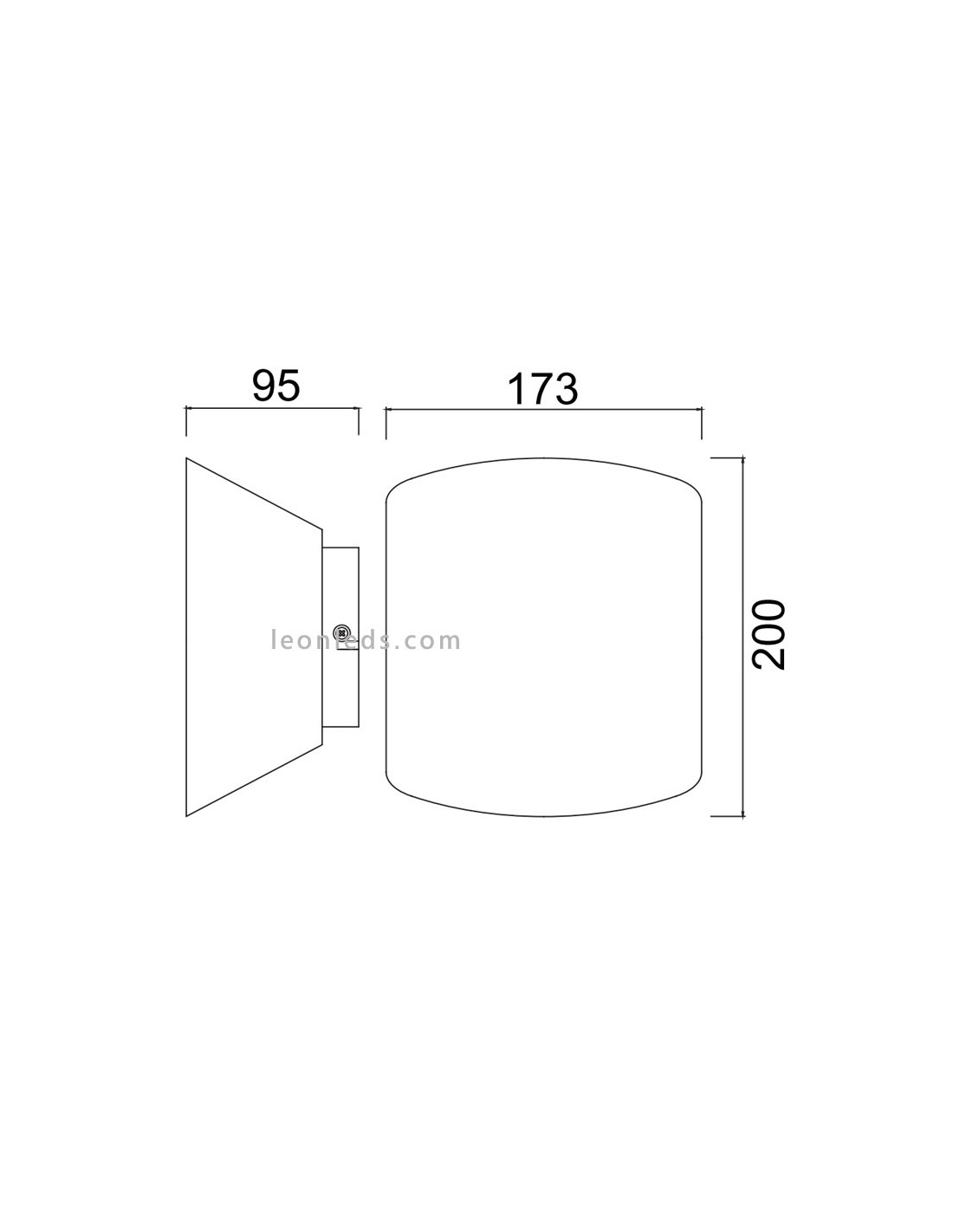 Die Wandleuchte hat eine Höhe von 20 cm, eine Breite von 17,3 cm und eine Tiefe von 9,5 cm.