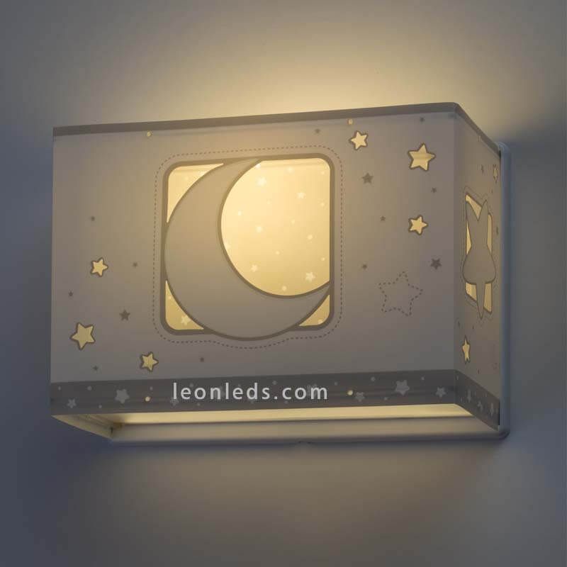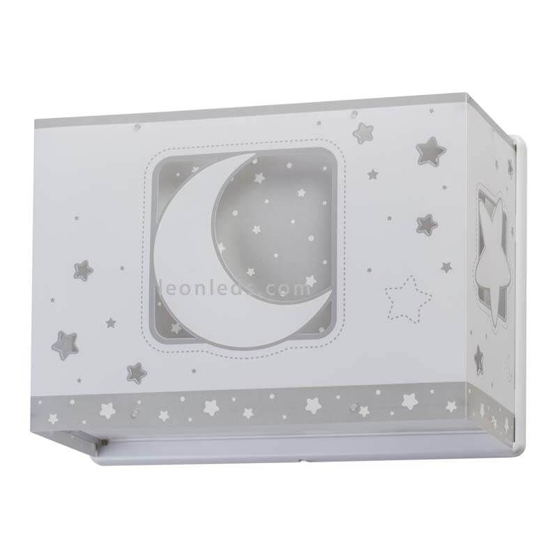 Graues Applique der Serie Moon Light mit kindgerechtem Design, hat eine Gesamthöhe von 22,5Cm und eine Breite von 31Cm.