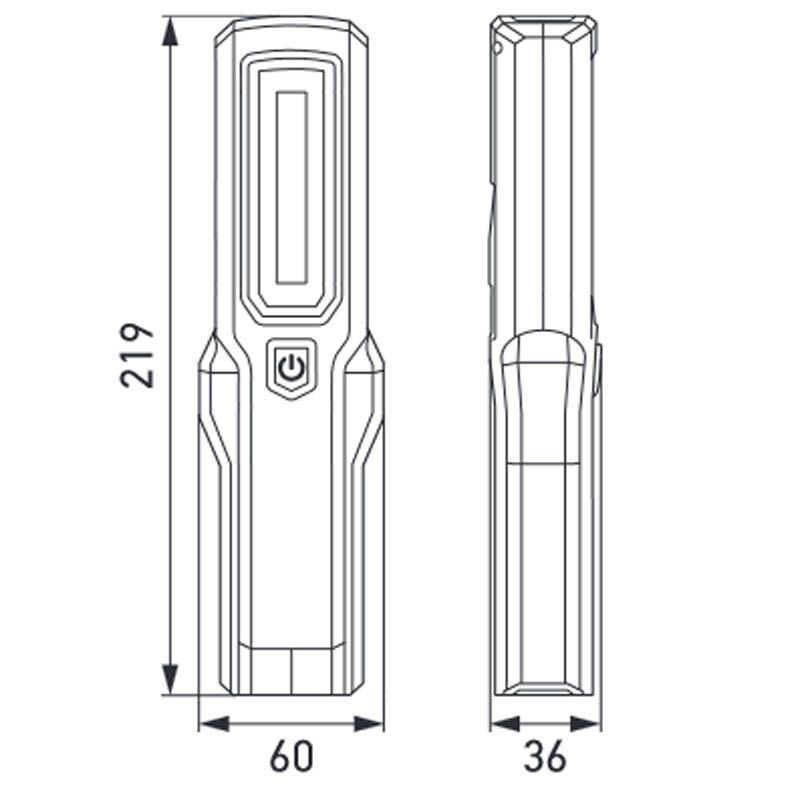 Die Arbeits-LED-Lampe mit unterem und hinterem Magnet, umfasst Front-LED-Licht und Oberlicht (3W COB - 1W) und verfügt über einen magnetischen Fuß, der um 180° gedreht werden kann, um das Licht in den gewünschten Bereich zu richten. Zudem ist sie stoßfest und sehr leicht, wiegt nur 300 Gramm. Enthält Micro-USB-Ladekabel und die mitgelieferte Li-Ion-Batterie hat 3,7V und 2000mAh. Sie hat folgende Abmessungen: eine Höhe von 21,9 cm, eine Länge von 6 cm, eine Breite von 3,6 cm. Die Batteriedauer beträgt 2,5 Stunden bei maximaler Leistung, Stufe 2, 3 Stunden bei Stufe 1 und 7 Stunden im Oberlicht, die Ladezeit beträgt maximal 4 Stunden.