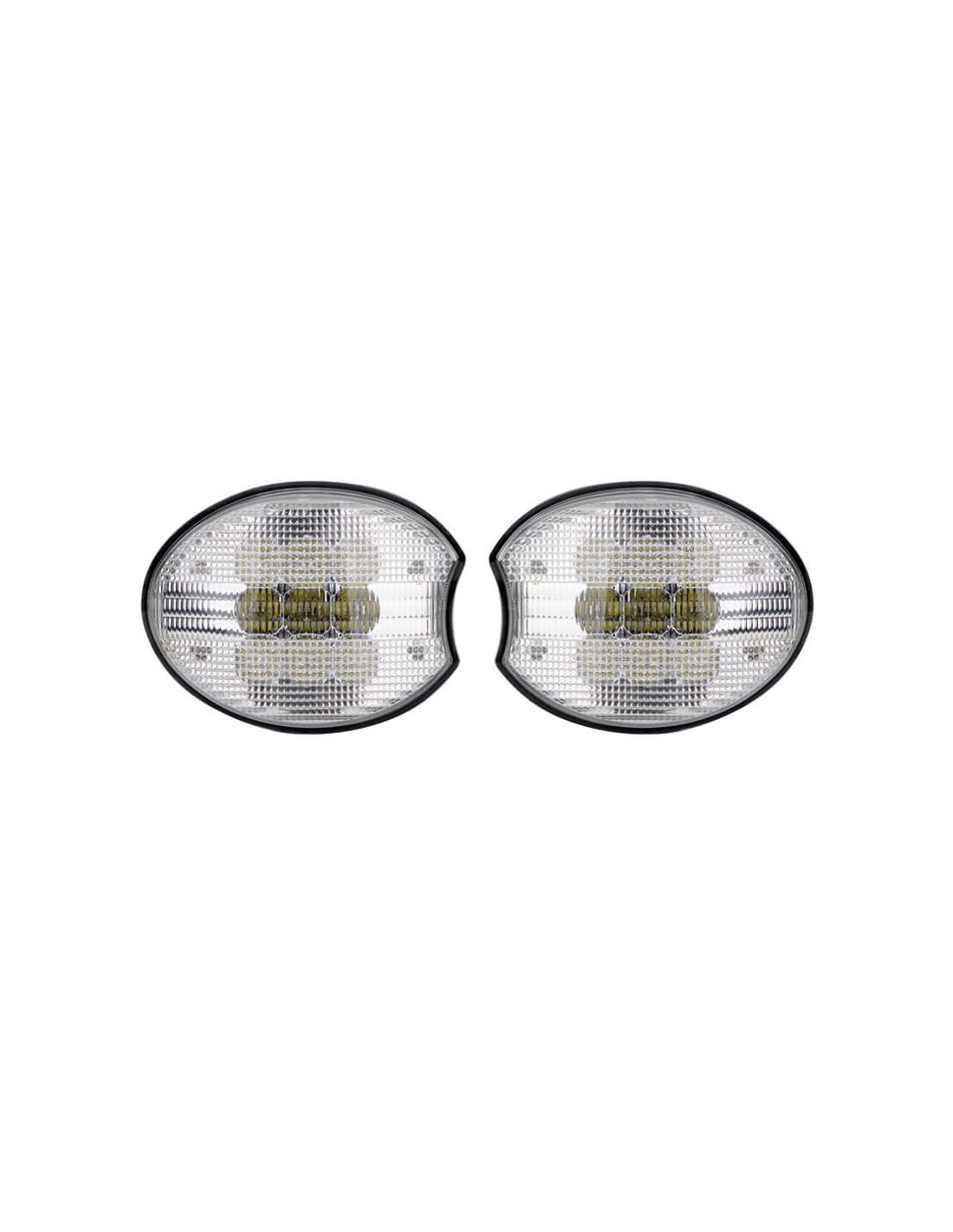 Arbeits-LED-Scheinwerfer für die Traktoren John Deere der 7020 Serie und 7030. Mit einer Leistung von 45W, einer Lichtintensität von 3.825Lm, mit originalem John Deere Stecker. Dieses Modell von LED Scheinwerfer wird eingebaut und benötigt keine zusätzliche Installation in den John Deere, inklusive 4 Schrauben für den Einbau. Es sendet keine Funkwellen ins Radio, hat das strengste EMC4-Zertifikat und ist mit einem originalen John Deere Stecker für einen direkten Austausch ausgestattet.
