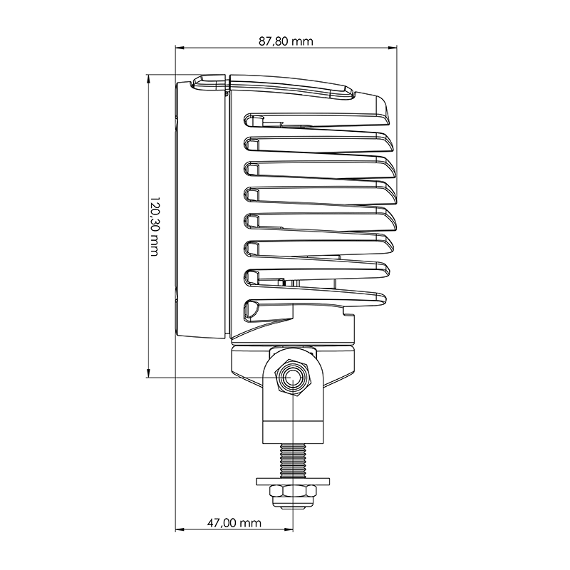 Das D10 Swivel Arbeitslicht hat eine aerodynamische Form und eine drehbare seitliche Halterung.