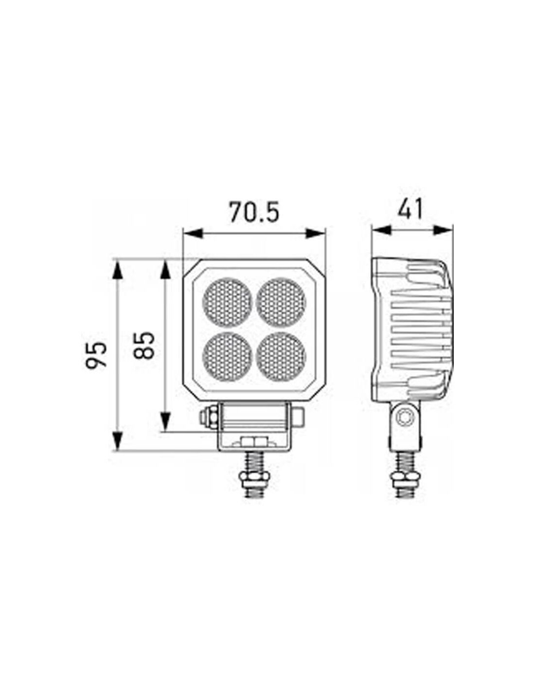 Mini Arbeitsstrahler LED quadratisch von der Marke Hella Modell TS1700 mit einer Leistung von 24W, einer Lichtintensität von 1.700Lm und einem Schutzgrad gegen Wasser und Staub von IP67 und IP69K, verfügt über insgesamt 4 LEDs und eine Lichtfarbe von 5.700K. Enthält 0,8m Kabel und kann sowohl in 12V als auch in 24V installiert werden.