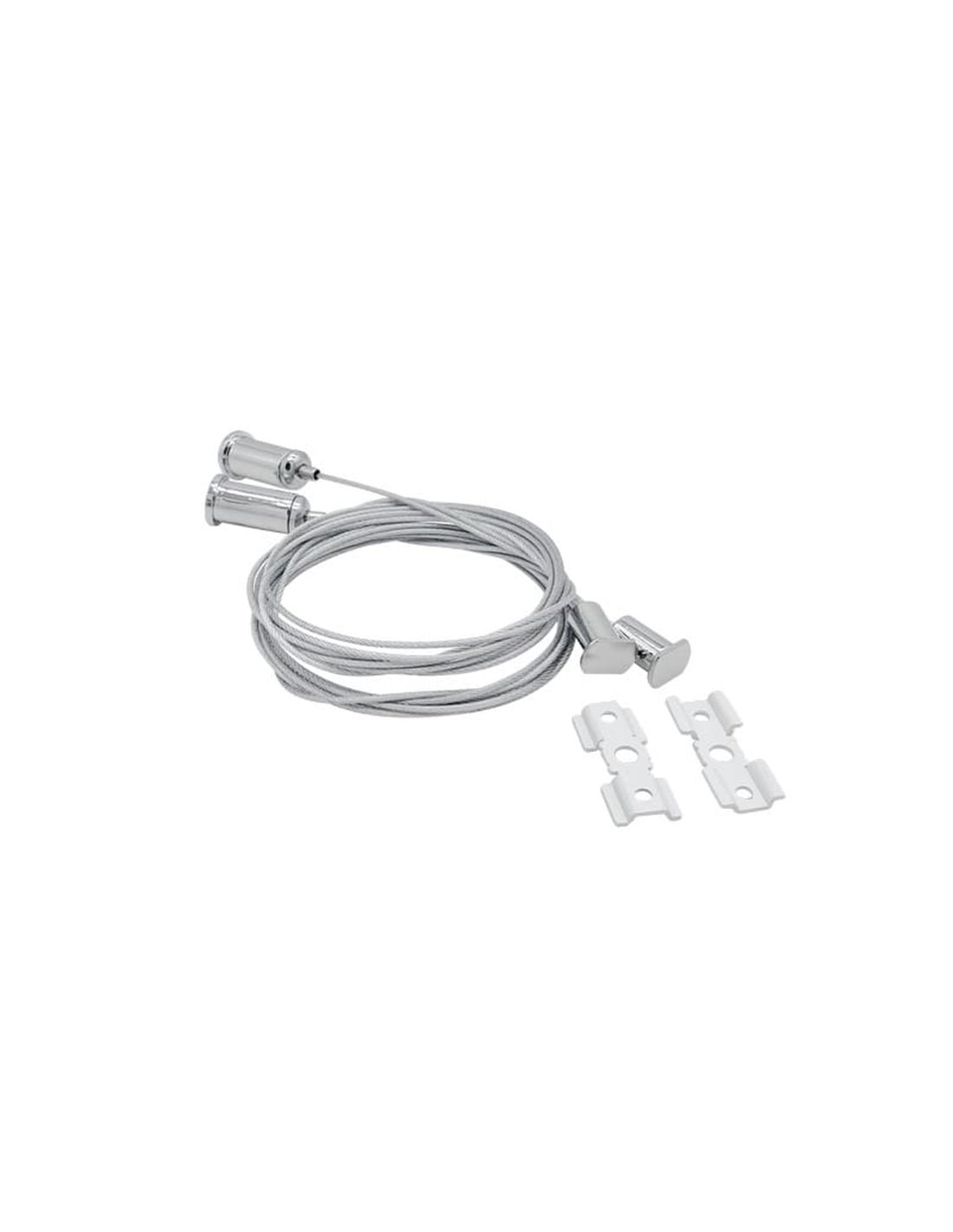 Aufhängungsset für das MAGNETO 48V-System in weiß. Enthält 2 vollständige Kits mit 2 m Kabel und Beschlägen, um das MAGNETO-Profil von der Decke mit verstellbarer Höhe aufzuhängen. Ideal für saubere Installationen in Einzelhandel, Büros und Wohnungen, kompatibel mit MAGNETO-Profilen für eingelassene oder oberflächenmontierte Installationen, die in Aufhängung umgewandelt wurden. Originallösung von Mantra mit professionellem Finish und einfacher Montage.