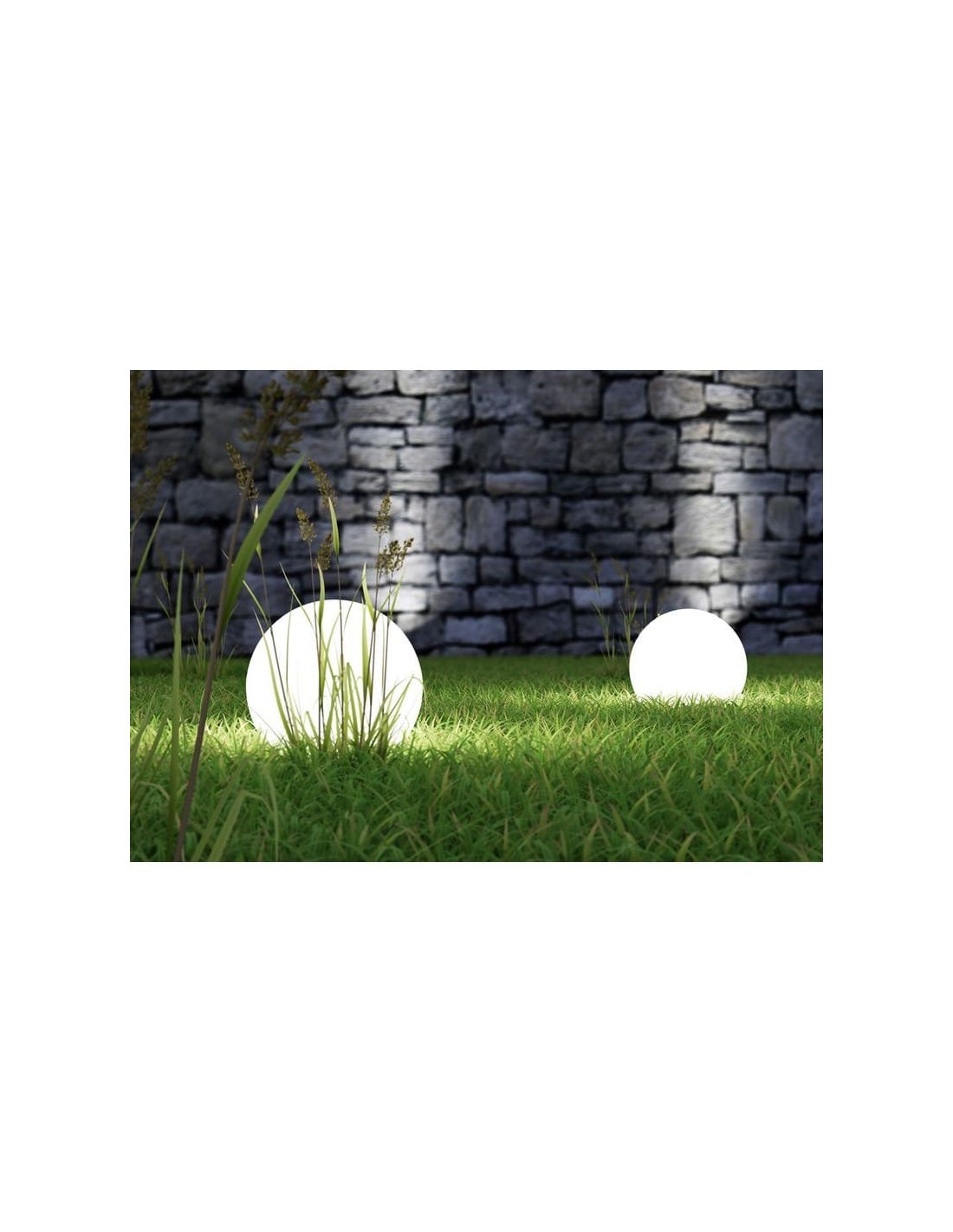 Die BOLO-Bodenleuchte in Kugelform mit einem fünf Meter langen Kabel bietet eine atmosphärische und funktionale Beleuchtung für Außenbereiche. Mit einem Durchmesser von 30 cm ist sie wetterbeständig und lässt sich einfach in Gärten montieren. Kompatibel mit LED-Lampen für eine Energieeinsparung von 80%.