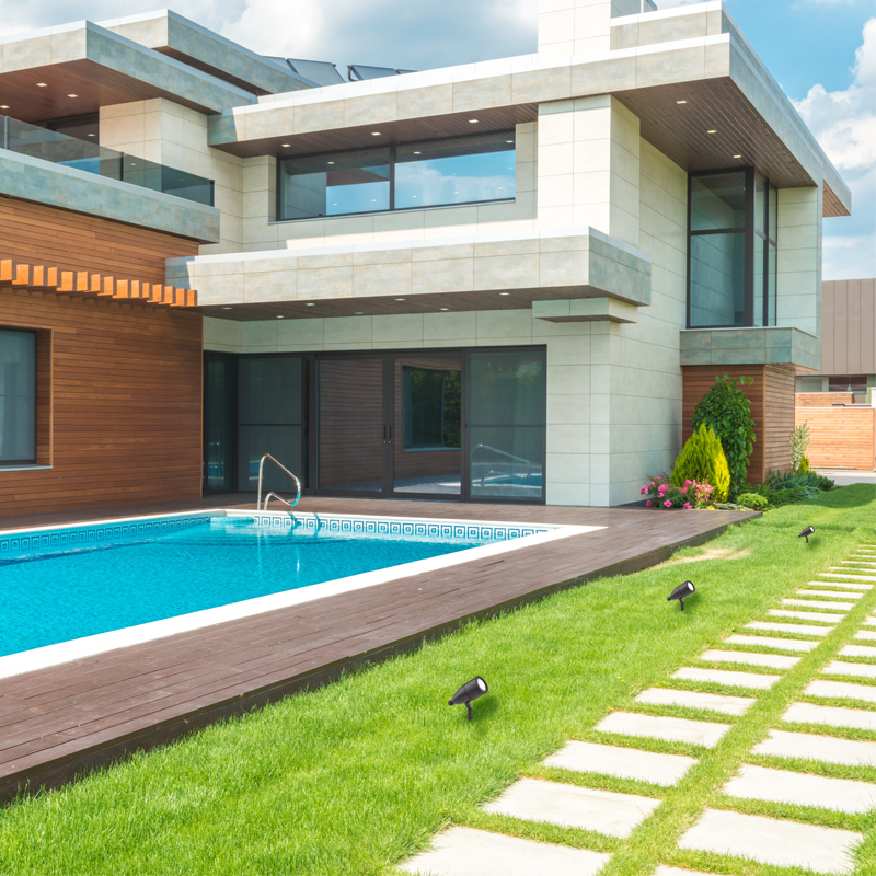 Der Außenstrahler der Kollektion Inside besteht aus einem Gehäuse aus pulverbeschichtetem Aluminium mit anthrazitfarbenem, Kaffee- oder grauem Finish. Der Lichtkopf ist verstellbar und hat einen diffusen Glasschutz aus transparentem Pyrex. Außerdem ist er mit einer Lanze zum Eingraben ausgestattet.