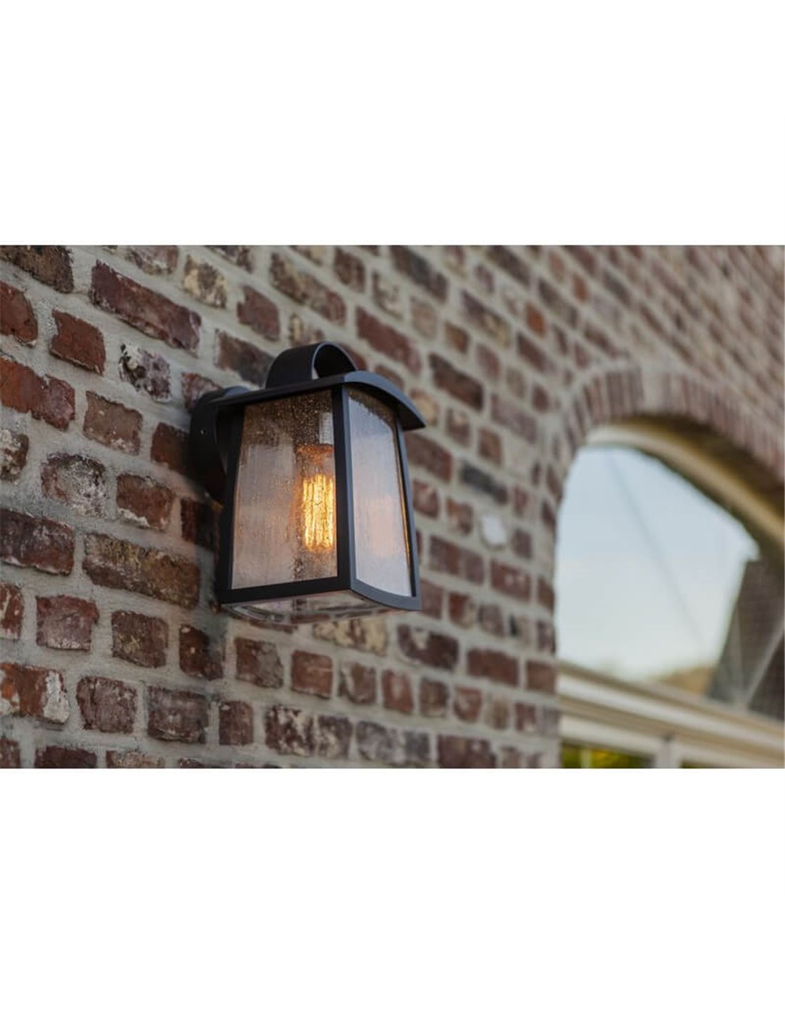 Kelsey ist ein Außenwandleuchte in mattschwarz mit 40W LED E27 Licht, die aufgrund ihres eleganten und einladenden Designs leicht zum Blickfang in deinem Garten wird.