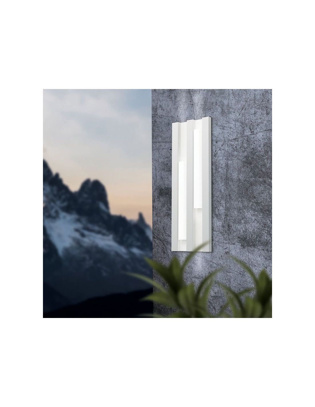 Die Außenwandleuchte LED FANDINA ist die perfekte Lösung für alle, die moderne und dekorative Außenbeleuchtung suchen. Diese Wandleuchte verfügt über ein Gehäuse aus galvanisiertem Metall in Schwarz und vier LED-Profile, die hinter weißen Kunststoffoberflächen verborgen sind, warmes Licht von 3000K mit einer Intensität von 1000 Lumen ausstrahlen. Diese Kombination schafft eine einladende und sichere Atmosphäre in jedem Außenbereich.