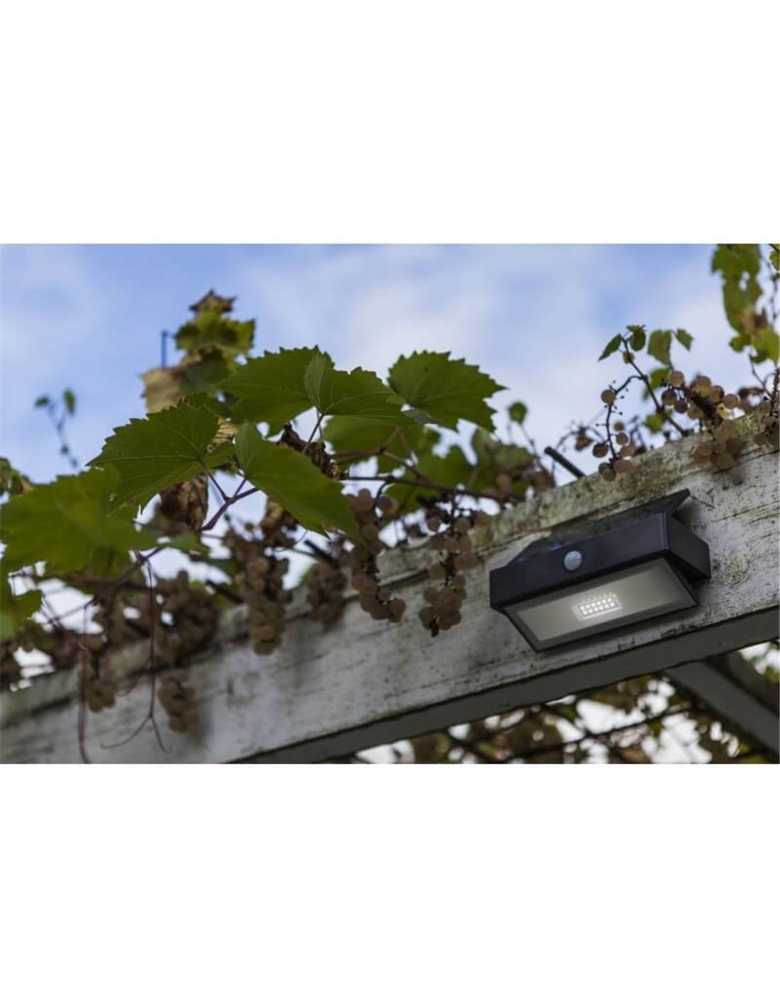 Die Solarleuchte Arrow verfügt über ein Gehäuse aus robusten Materialien in dunkler Graufärbung und einen transparenten Diffusor, sodass du nichts mit ihrer effizienten Beleuchtung verpasst und die höchste Haltbarkeit im Außenbereich genießt (IP44).
