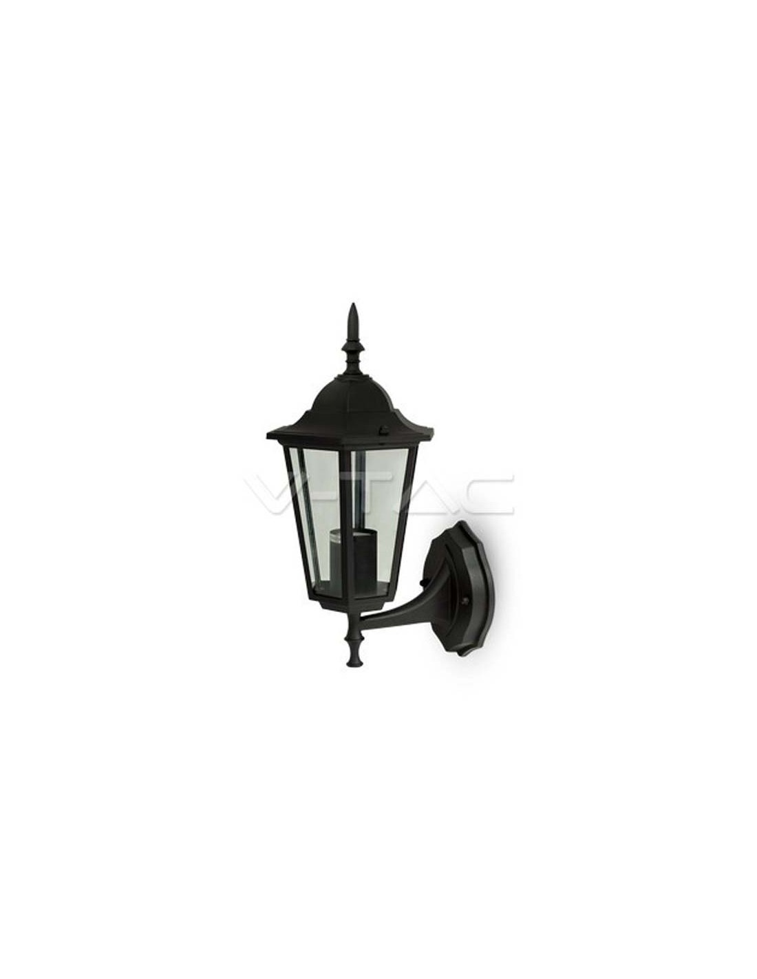 Externer schwarzer Anbau im klassischen Design zur Installation von 1 LED-Birne mit E27-Sockel (nicht enthalten), hergestellt aus Aluminium und Glas, ideal für die Außenbeleuchtung dank ihrer IP44.