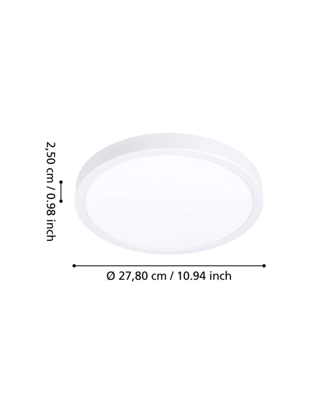 Badleuchte IP44 FUEVA 6 weiß Ø280mm, 14,2W 1800Lm CCT. Ultra-dünnes Profil (25mm), IP44 für feuchte Bereiche, 14,2W • 1800 Lm. Reguliertes Licht CCT 2700K / 4000K / 6500K. Maße: Ø 280mm x 25mm.
