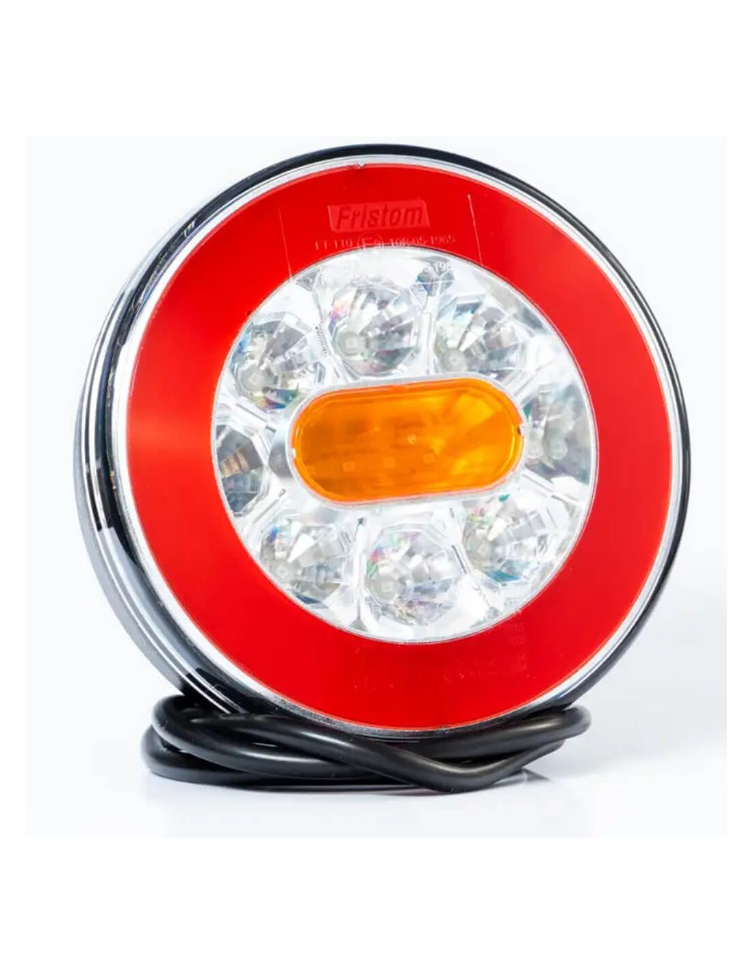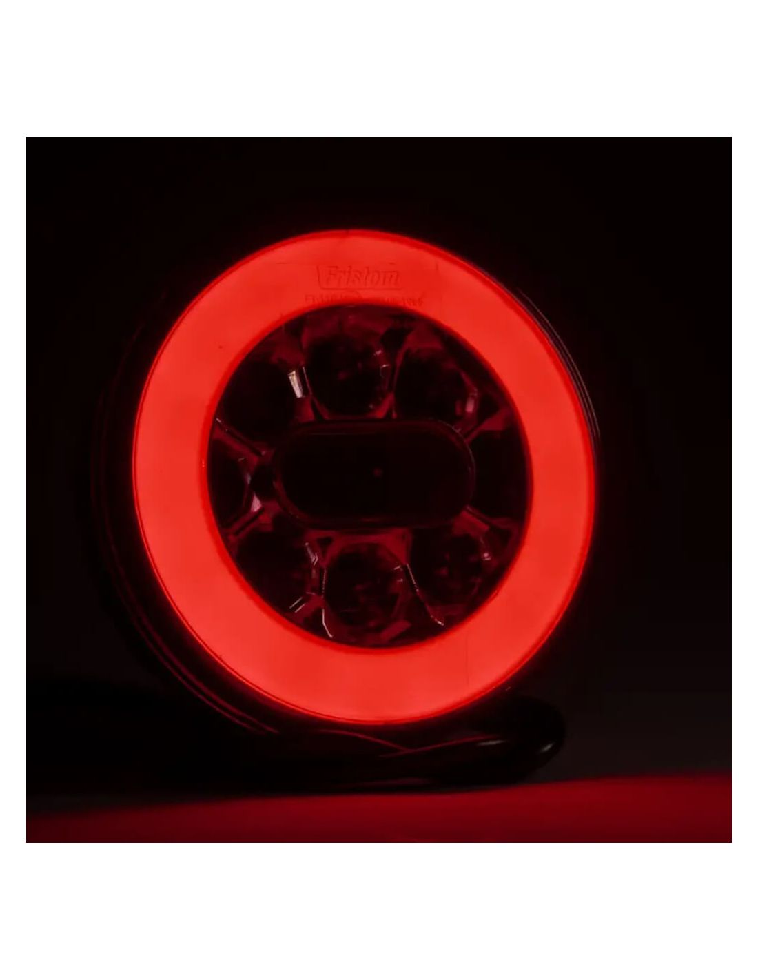 Die FT-110 ist Fristoms Lösung für Fahrzeugaufbauten, die eine schnelle Montage und extreme Langlebigkeit erfordern. Diese Leuchte vereint Positionslicht mit Neoneffekt, Bremslicht und Blinker in einem vollständig wasserdichten (IP68) Polycarbonat-Gehäuse. Ihr 5-poliger Bajonettstecker gewährleistet eine saubere, sichere und feuchtigkeitsgeschützte Montage an Anhängern und Nutzfahrzeugen.