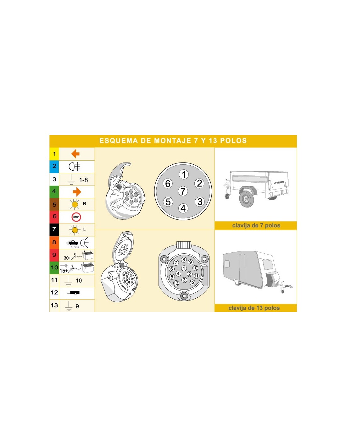 13-polige Basis für einen 13-poligen Stecker mit Schutzabdeckung, hergestellt aus hochfestem Polycarbonat, enthält einen Gummiverschluss an der Rückseite für den Anschluss der Kabel.
