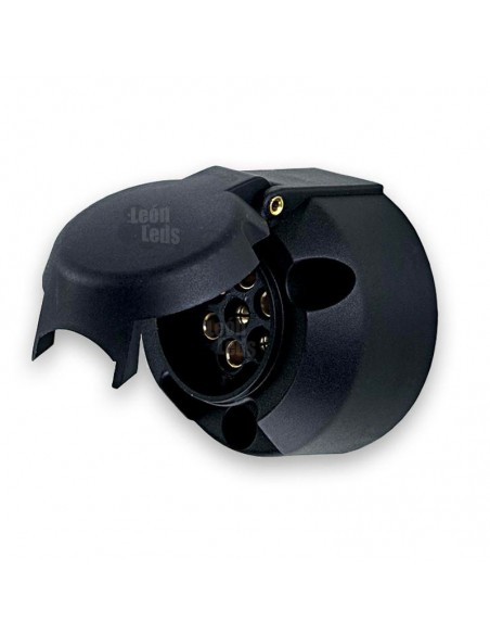 7-polige Anhängerbasis aus erstklassigem Polycarbonat und mit einem hinteren Gummiverschluss, um die gesamte Kabelverbindung abzudecken.