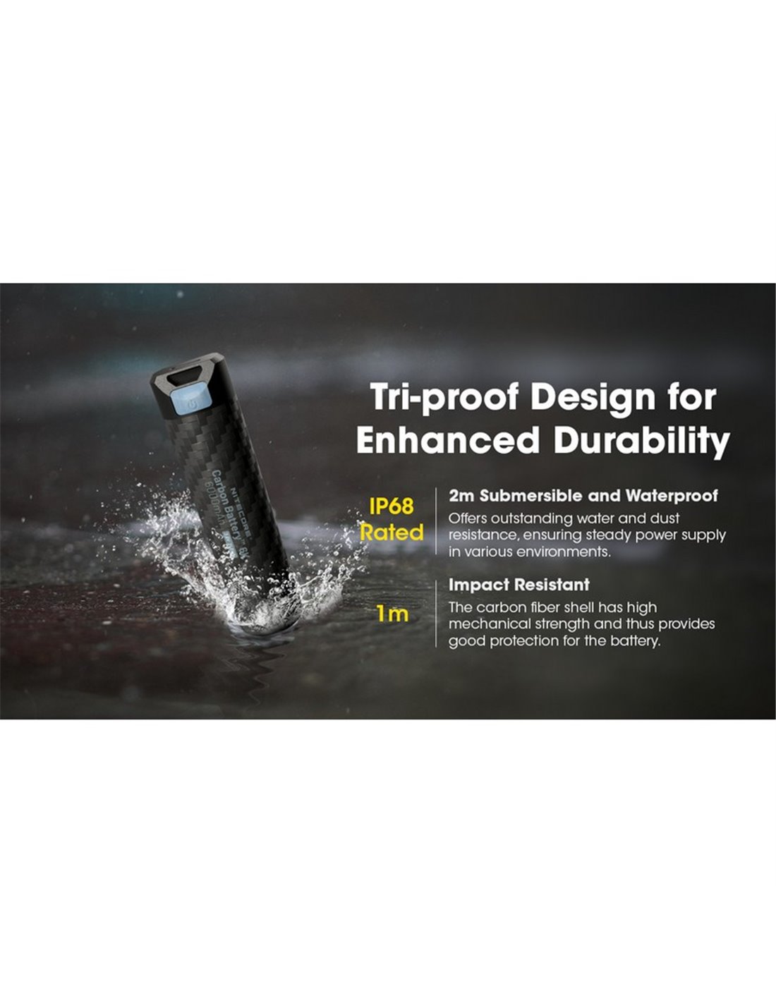 Mit der Wiederaufladbaren Powerbank Carbon 6000mAh von Nitecore können Sie sich darauf verlassen, dass Ihre Geräte stets aufgeladen sind, selbst in den herausforderndsten Umgebungen. Ihre Wasser- und Staubresistenz, zusammen mit schnellem Laden, machen sie zur unverzichtbaren Wahl für alle, die zuverlässige und qualitativ hochwertige Energie während ihrer täglichen oder abenteuerlichen Aktivitäten benötigen.