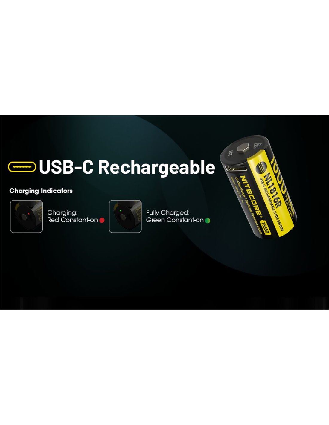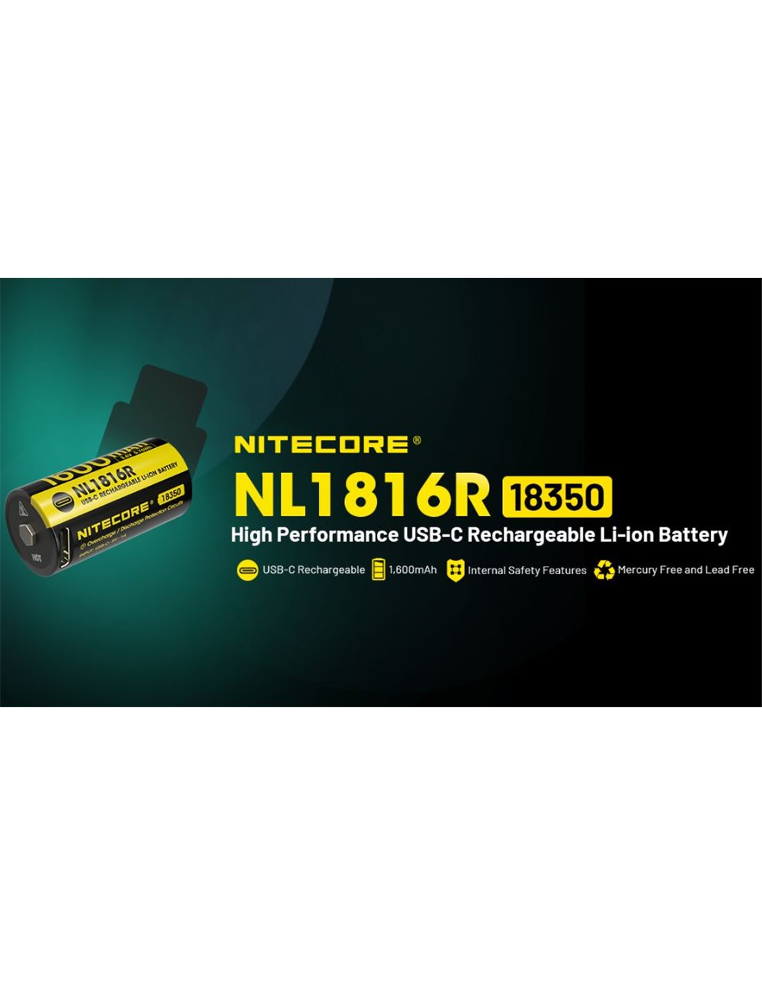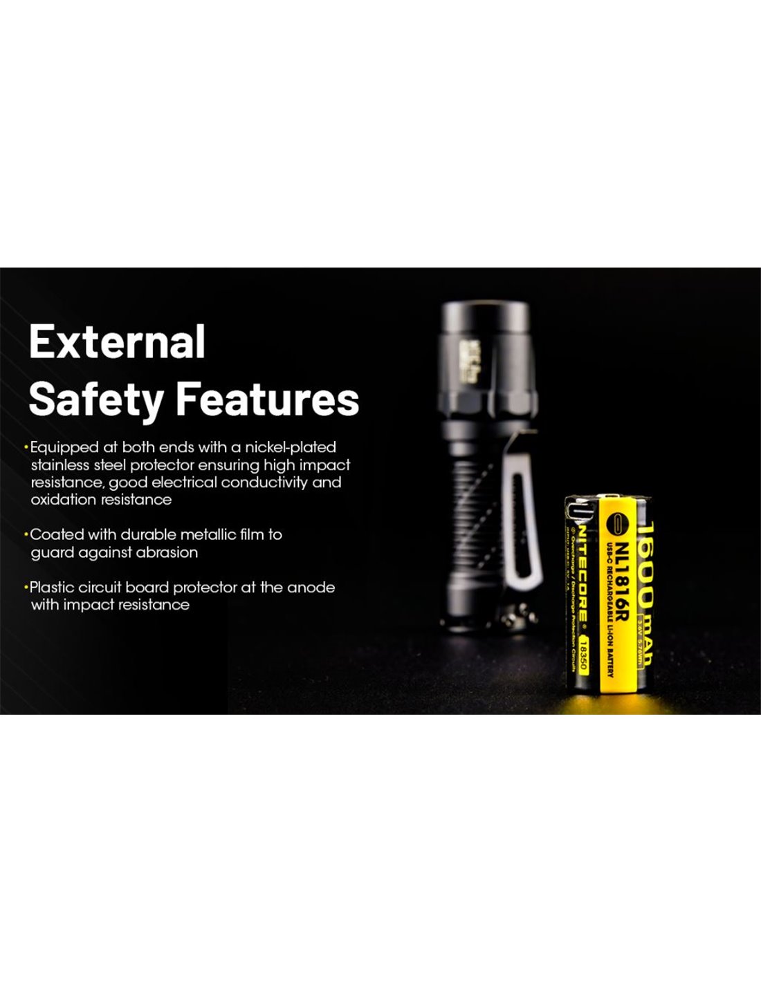 NITECORE NL1816R mit 1600 mAh und USB-C-Ladung, entwickelt für die MT1C Pro Taschenlampe. Bietet eine kontinuierliche Entladung von 3 A, fortschrittlichen elektronischen Schutz und robuste Bauweise mit verzinktem Edelstahl. Kompakt, sicher und effizient.