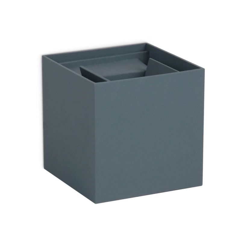 Sie hat einen integrierten Treiber, und die Abmessungen sind auf einem der Fotos zu sehen: Höhe 10 cm, Breite 10 cm und ragt 10 cm von der Wand hervor. Ihre Struktur besteht aus anthrazitfarbenem Aluminium mit modernem quadratischem Design, ideal für moderne Außenfassaden. Sie strahlt Licht nach oben und unten aus, beleuchtet sowohl die Oberseite der Mauer und Wand als auch deren Unterseite.