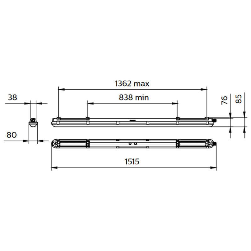 Starker wasserdichter LED-Bildschirm, seine Leistung beträgt 57W, eine Länge von 1,500 cm und eine Lichtstärke von 8.000 Lm, dieser Bildschirm der Marke Philips, Serie CoreLine Gen 2 ersetzt die Bildschirme von 2X58W.