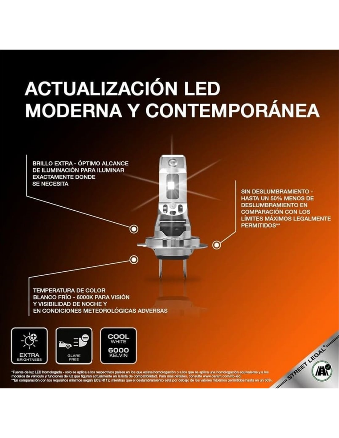 Die NIGHT BREAKER LED SPEED H7 450 von OSRAM bietet bis zu +450% Helligkeit und Reichweite bis zu 240 m bei Abblendlichtern, mit weißem Licht 6000K für besseren Kontrast und visuellen Komfort. Entwickelt für den Einsatz auf der Straße, wo es zulässig ist und gemäß der Kompatibilitätsliste.