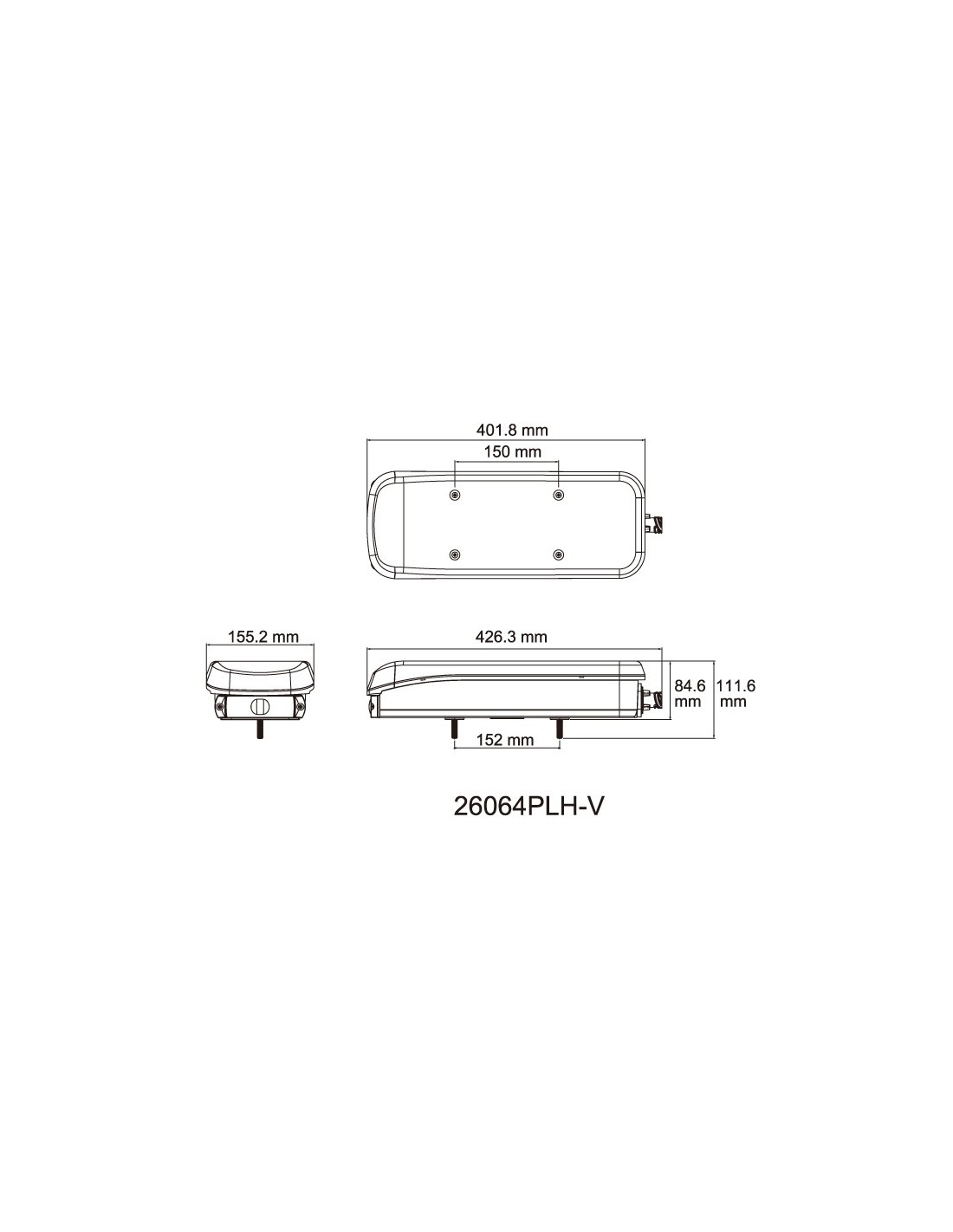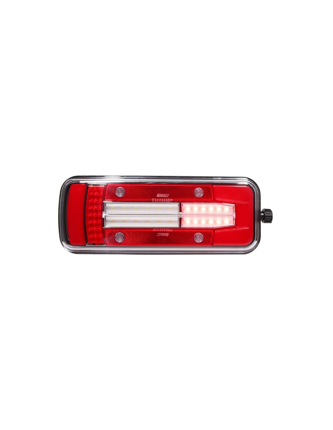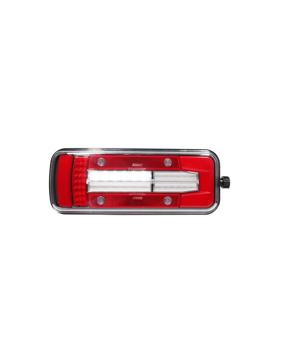 Rückleuchte LED 8 Funktionen für Lkw mit seitlichem 7-Pin Tyco-Stecker zur Installation in einer Zugmaschine, geeignet für 12V und 24V, linke Seite mit unterer Kennzeichenbeleuchtung.