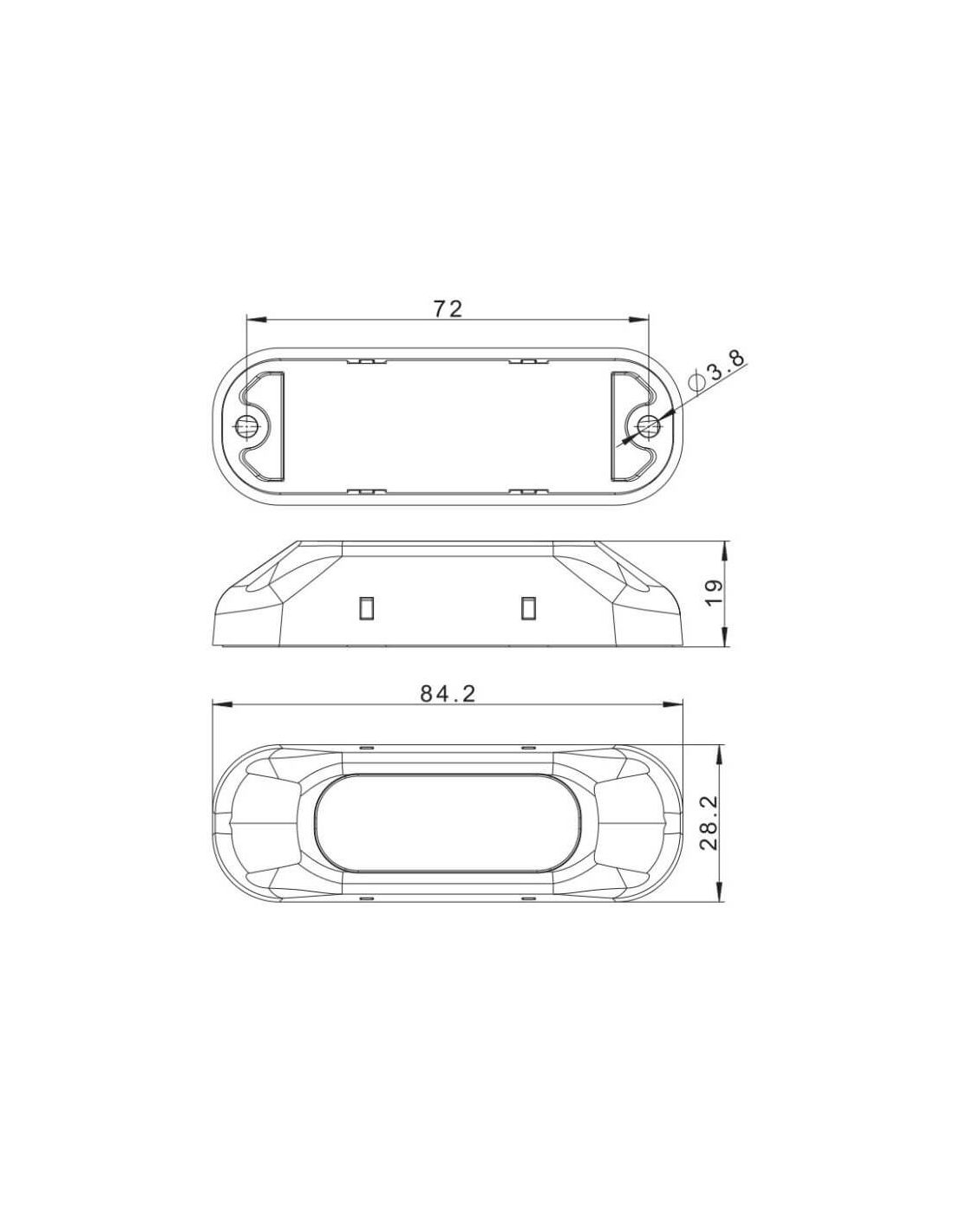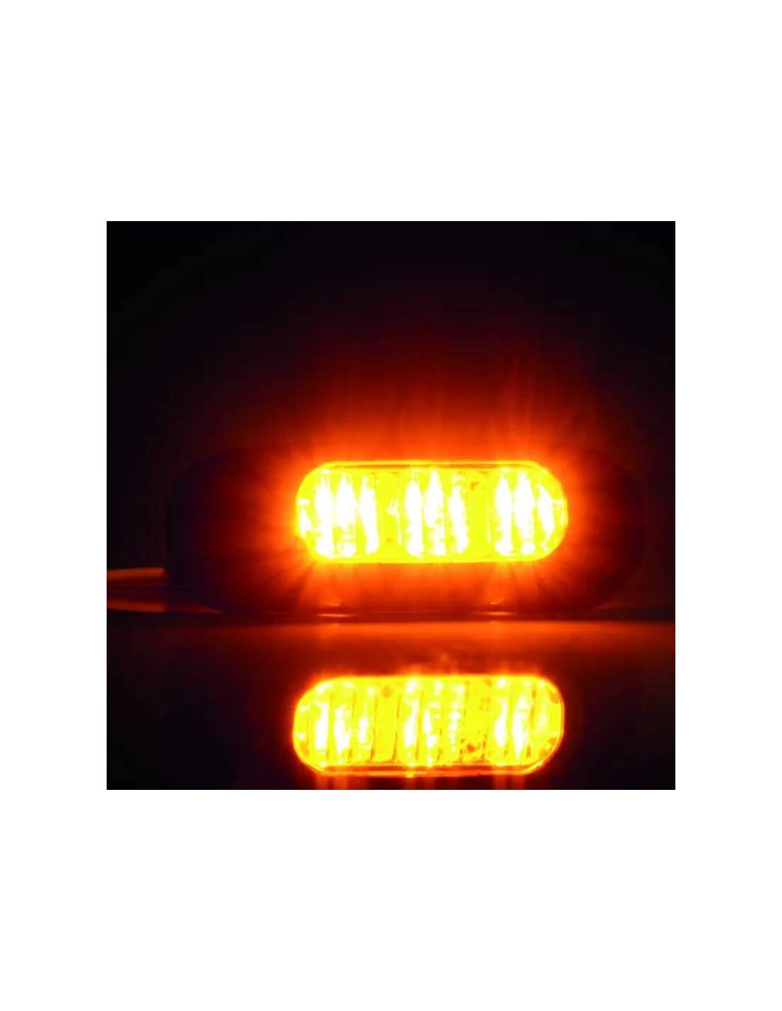 Blinklicht LED Amber von der Marke Fristom Modell FT-210 zur Oberflächeninstallation mit Halterung. Dieses Modell kann zusammen mit dem FT-200 installiert werden, da sie dasselbe Synchronisationssystem verwenden. Es funktioniert mit hochleuchtenden LEDs von Osram. Für die Installation sind 0,25 Meter 3-Draht-Kabel enthalten, das gelbe ist das Synchronisationskabel, das weiße ist Masse und das schwarze ist positiv.