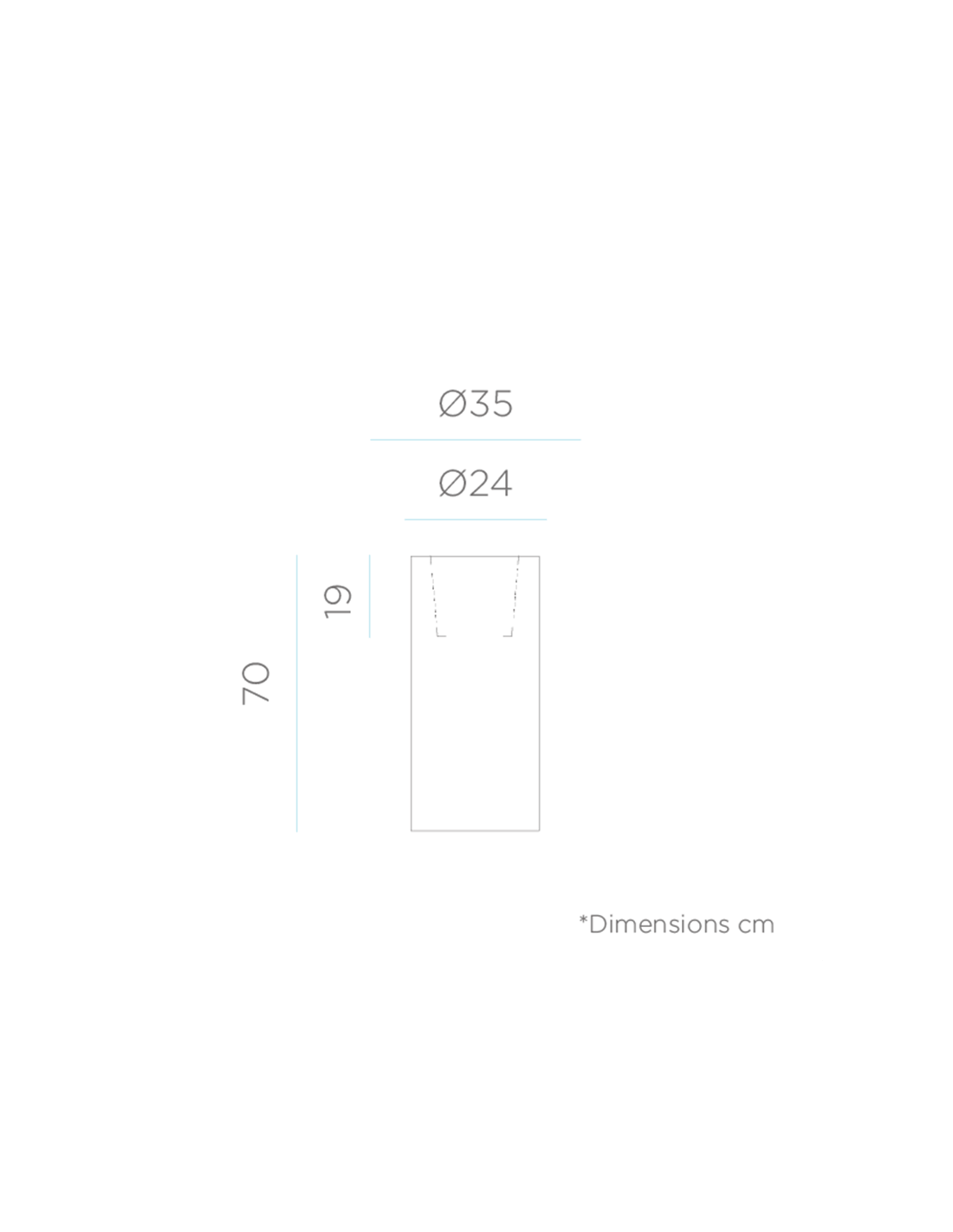 Der runde Blumentopf Palma mit Licht hat Maße von Ø35 cm x 70 cm.
