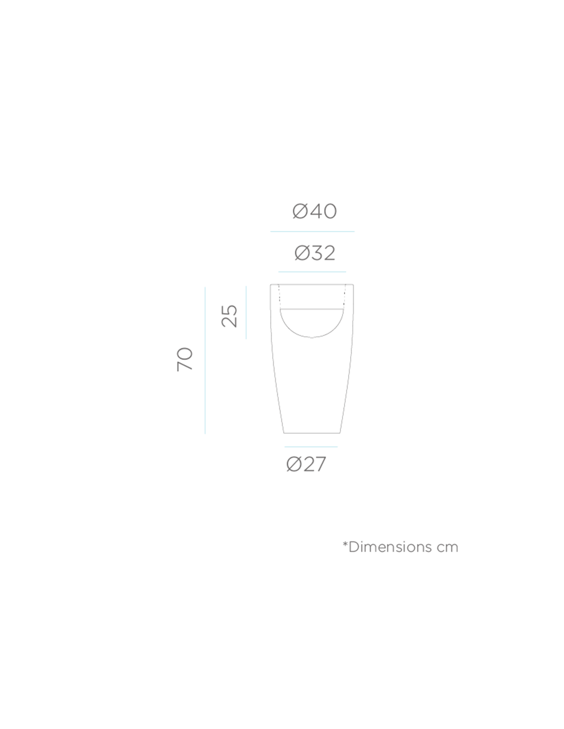 Der Blumentopf Bambú 70 und Bambú 90 unterscheiden sich durch folgende Maße: Ø40 cm x 70 cm im ersten Modell und Ø40 cm x 90 cm im zweiten.