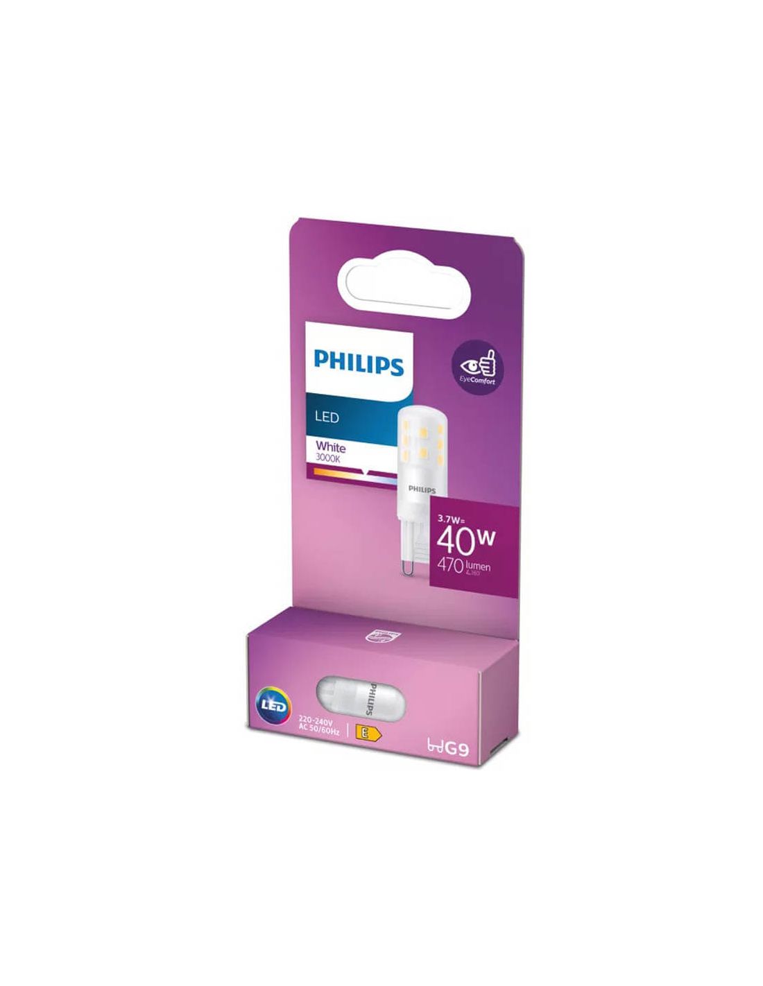 LED G9 Lampe Philips LEDspot 3,7W entspricht 40W Halogen. Warmes Licht 3000K, 470 Lumen, CRI 80 und 15.000 Stunden Lebensdauer. Nicht dimmbar. Hohe Effizienz 127 lm/W. Energieklasse E.