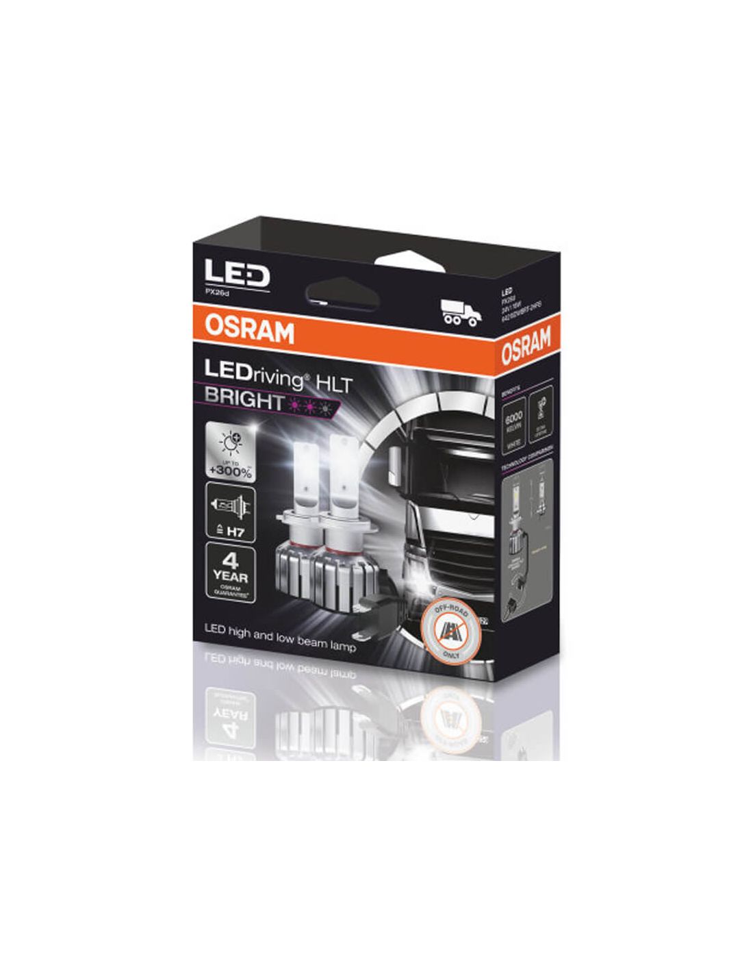 Die Neuheit in der LED-Technologie bei Osram ist die neue Reihe von LED-Birnen Osram LEDDriving HLT Bright für Lkw-Scheinwerfer, die ausschließlich für 24-Volt-Installationen hergestellt werden. Diese Birnen sind das Ergebnis jahrelanger technologischer Innovation von Osram und schaffen einen Scheinwerfer, der in allen Bereichen die Erwartungen übertrifft. Diese Birnen erreichen ein weißes Licht von 6000K und erzeugen ein Licht, das 300 % heller ist als eine herkömmliche Halogenbirne.