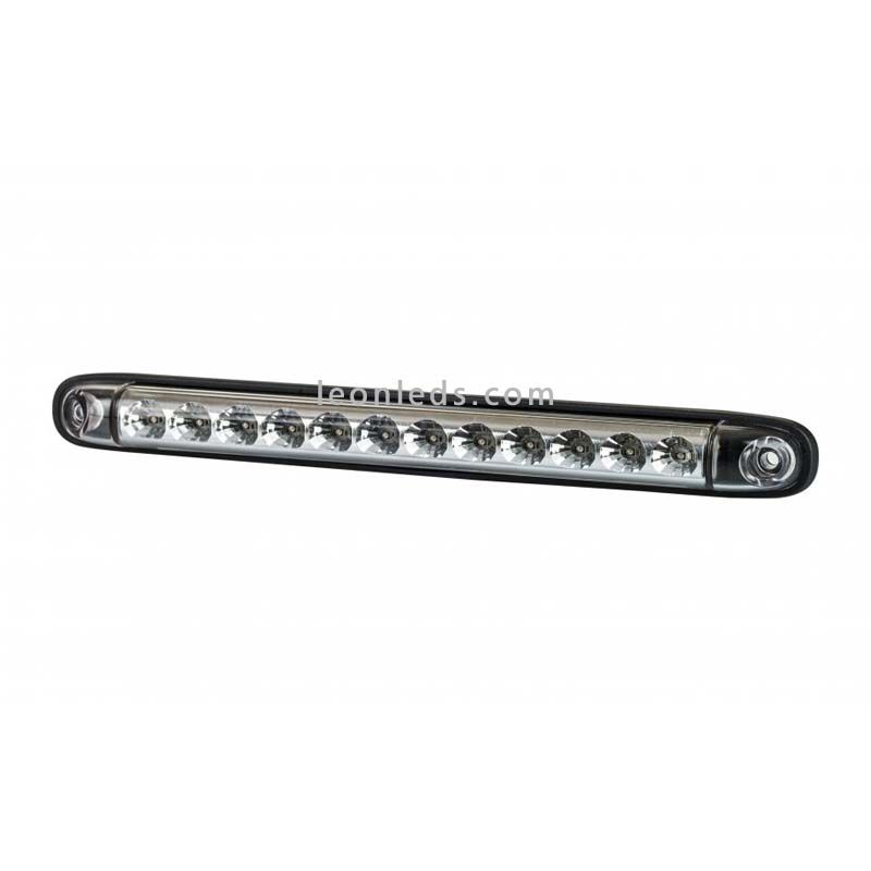 Rückseitige LED-Leiste mit LED-Bremslicht und LED-Positionslicht, geeignet für Spannungen von 12V und 24V, mit transparenter Linse, mit einer Gesamtlänge von 25,7 cm.