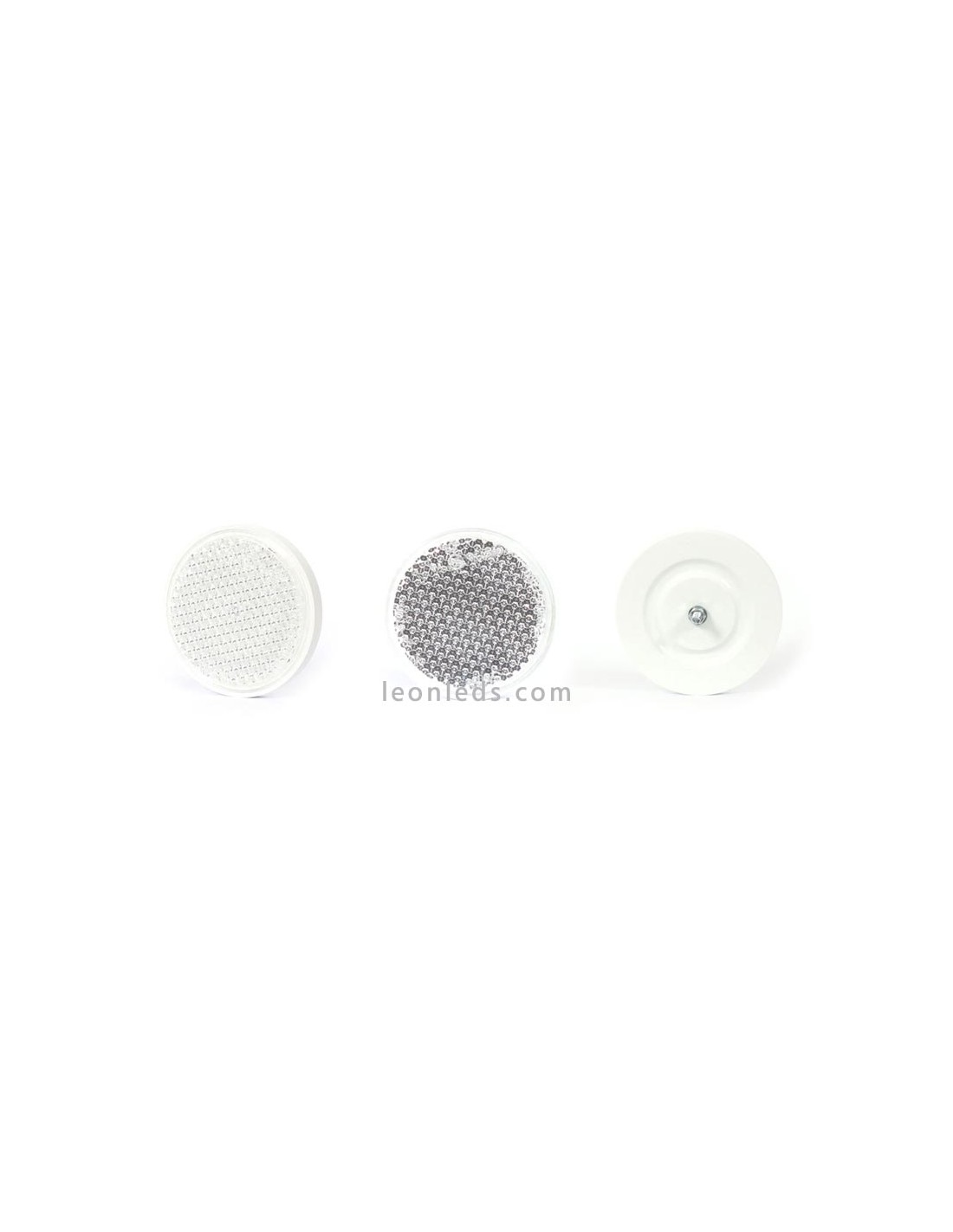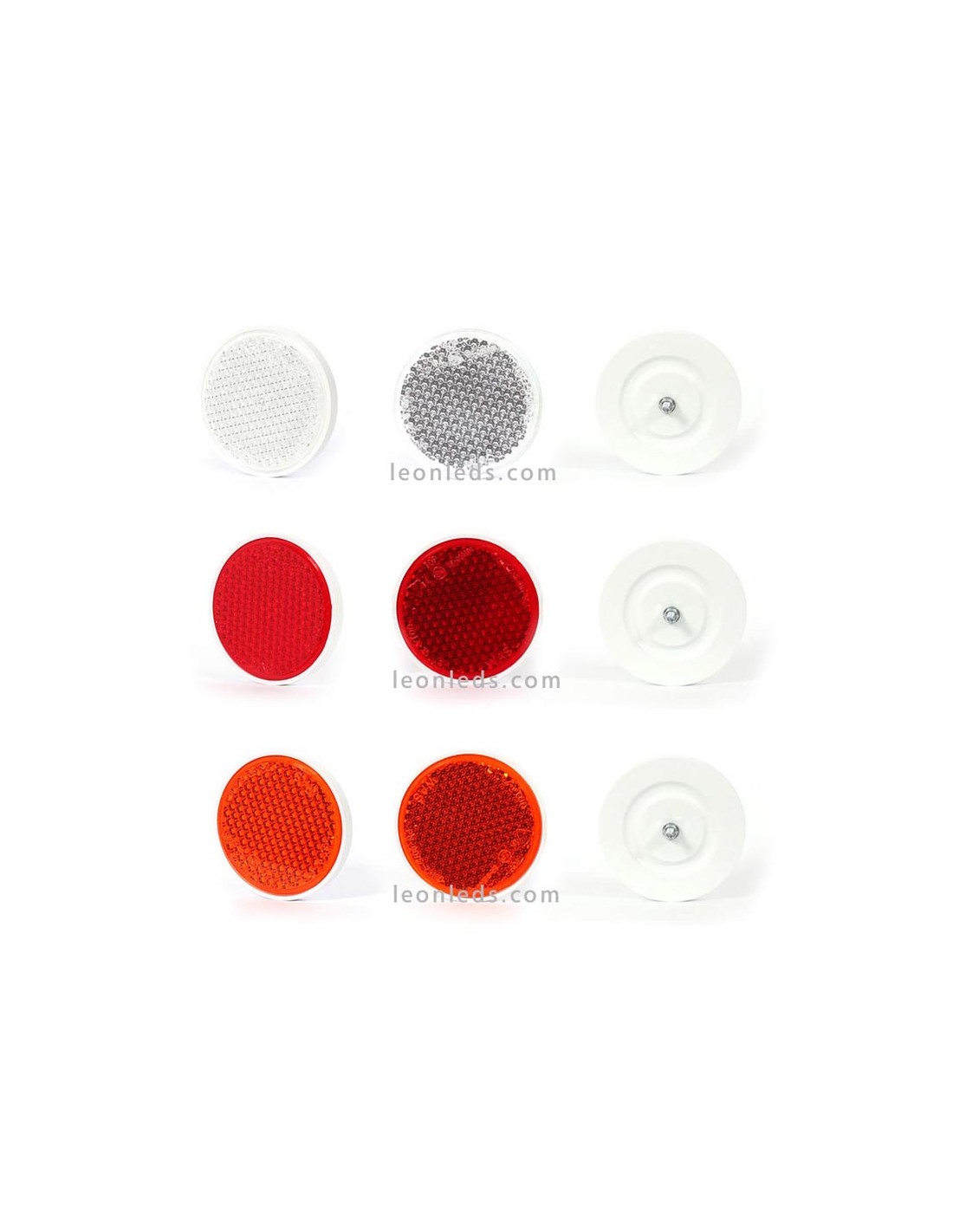 Runder Katadioptrischer Reflektor mit Schraube in runder Form und einem Durchmesser von 8,5 cm, enthält eine Schraube auf der Rückseite mit Mutter und Unterlegscheibe. Sie sind homologiert und können problemlos montiert werden.
