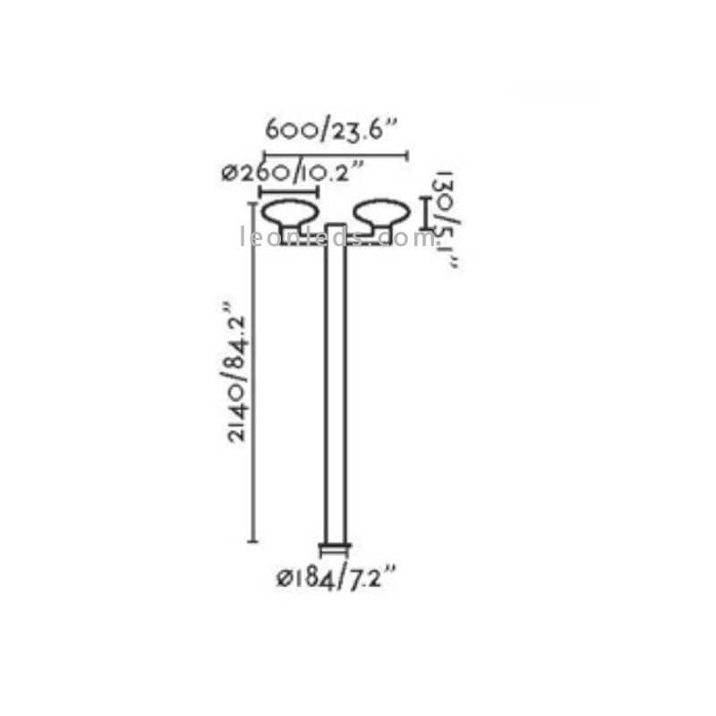 Es handelt sich um eine Außen-Säule mit 2 Armen mit einer Höhe von 215 cm, einer Breite von 26 cm und einem Durchmesser an der Basis von 18,4 cm. Sie ist aus dunklem grauem Aluminium gefertigt, während die 2 Lichtdiffusoren aus mattem weißen PMMA bestehen. Der Schutzgrad dieser Laterne gegen Wasser und Staub beträgt IP44, und der angebotene Stil ist modern, passt jedoch immer zum Raum, in dem sie angebracht wird, da ihre anthrazitfarbene Farbe perfekt mit jedem Garten oder Außenbereich kombiniert.
