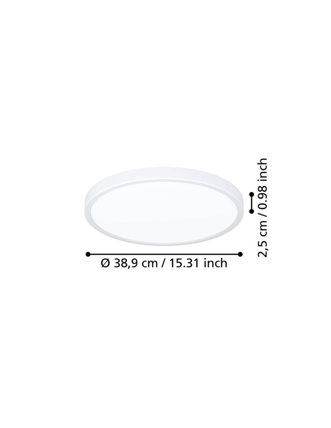 LED Deckenleuchte für Oberflächenmontage weiß FUEVA 6 Ø390mm, 17W 2900Lm CCT IP20. Ultra-dünnes Profil (25mm), 2900 Lm und regulierbares Licht CCT 2700K / 4000K / 6500K. Nutzung für Innenräume IP20. Maße: Ø 390mm x 25mm.