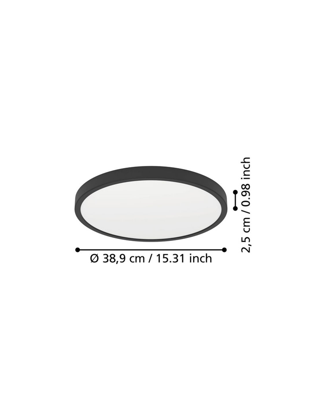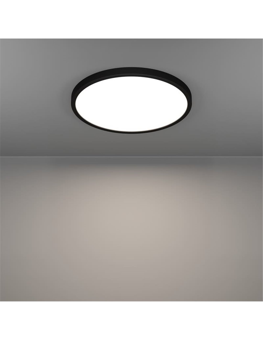 Decken-LED-Panel Rund Schwarz FUEVA 6 Ø390mm, 17W 2900Lm CCT IP20. Ultraflacher Rahmen (25mm), 2900 Lm und regulierbares Licht CCT 2700K / 4000K / 6500K. Nutzung im Innenbereich IP20.