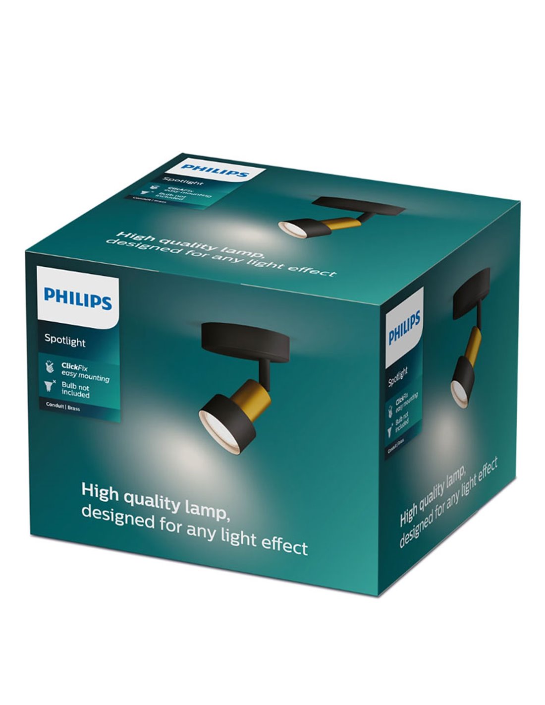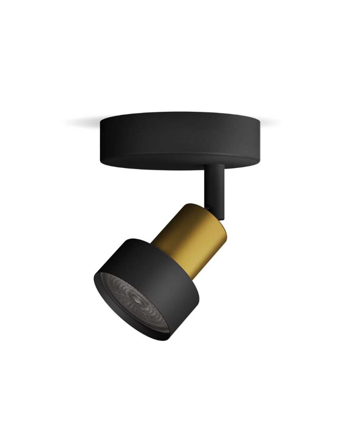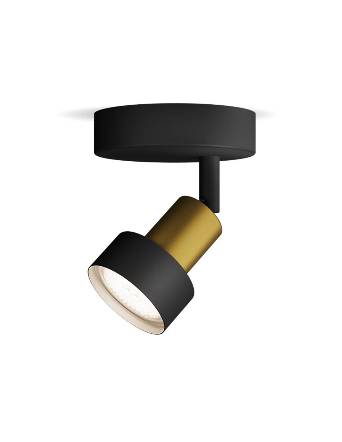 Decken-/Wandspot aus Metall CONDUIT in Schwarz und Messing. Kompatibel mit GU10 Leuchten (nicht im Lieferumfang enthalten). Installationssystem ClickFix für eine schnelle und einfache Montage.