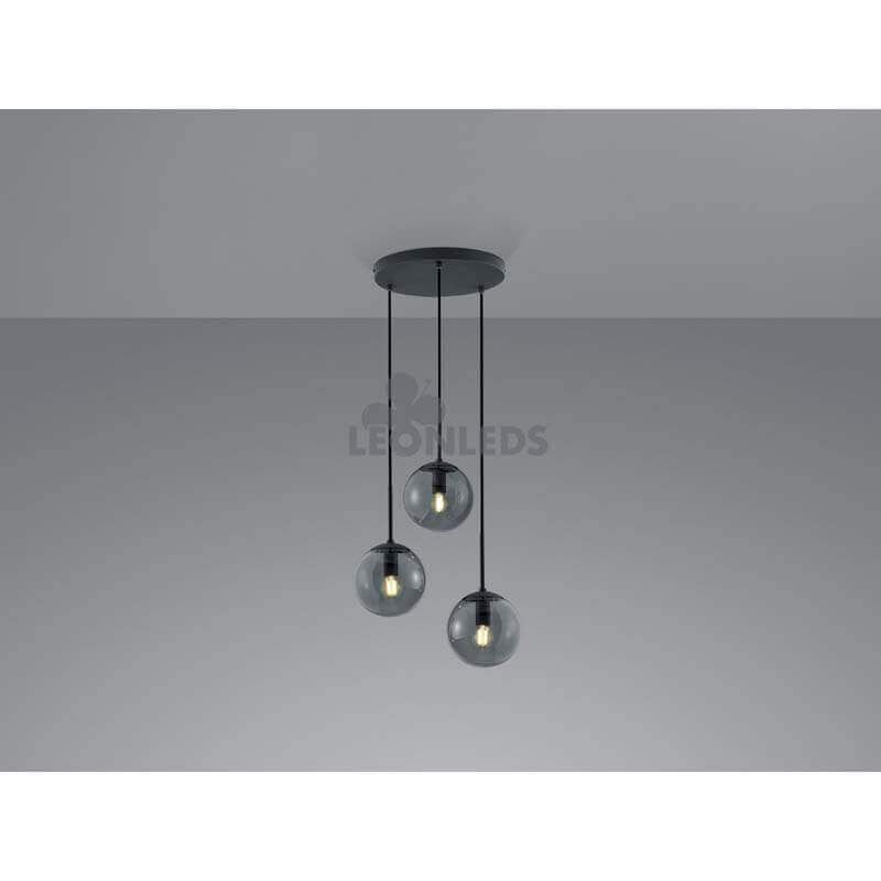 Deckenlampe mit 3 hängenden Glaskugeln aus der Balini-Kollektion der Marke Trio Lighting. Sie hat eine regulierbare Höhe von 150 cm. Sie besteht aus Metall und Glas, in zwei verfügbaren Farben. Die Höhe der 3 Glaskugeln kann unabhängig voneinander reguliert werden.