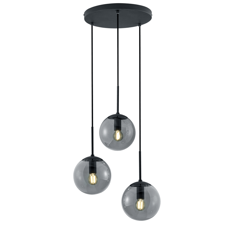 - Mit einer Metallstruktur in Anthrazit und Glaskugeln in Rauch- oder Smoke-Farbe.