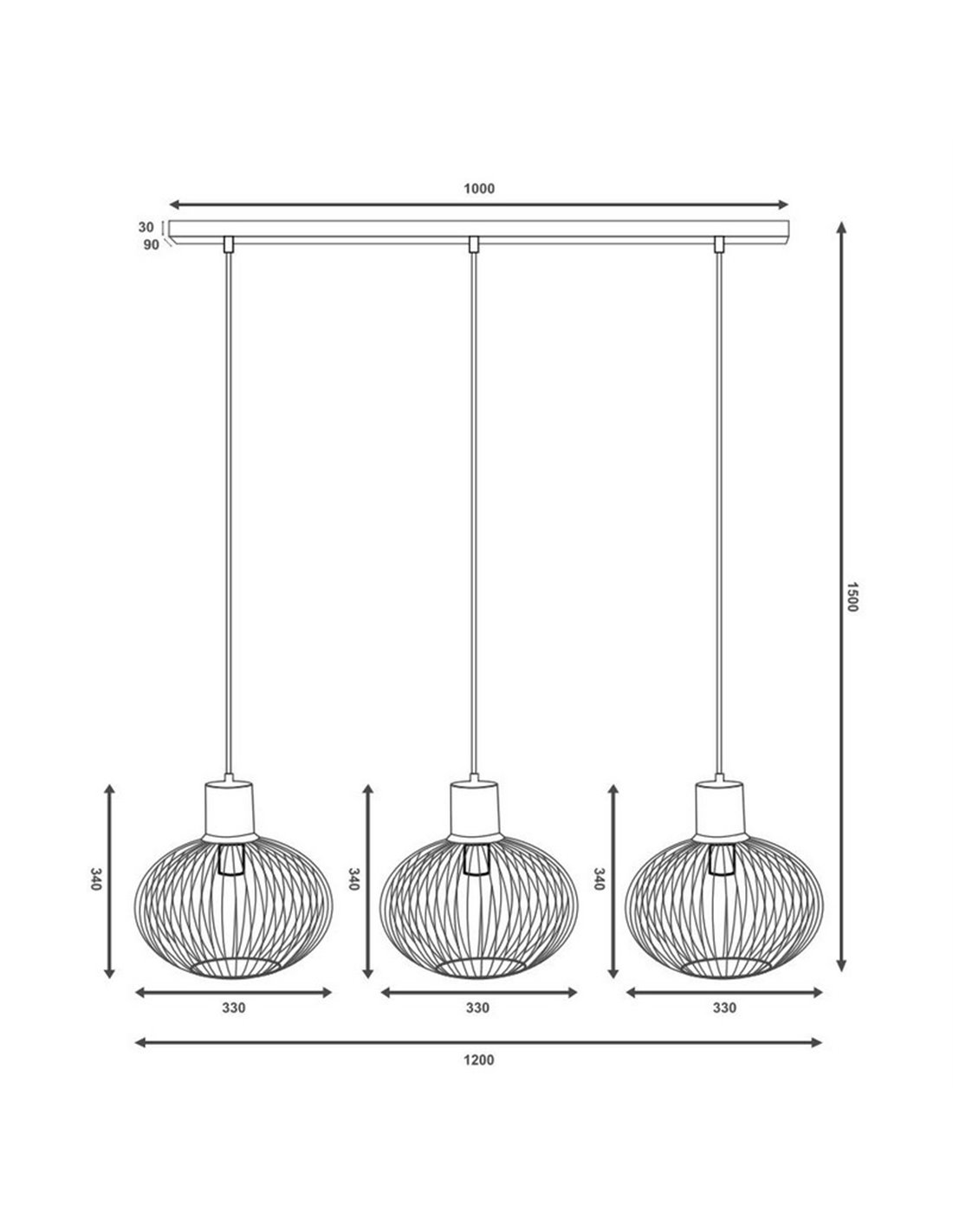Hängelampe GILA 3 Lichter Metallgitter schwarz