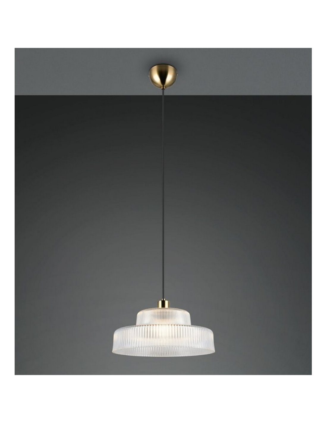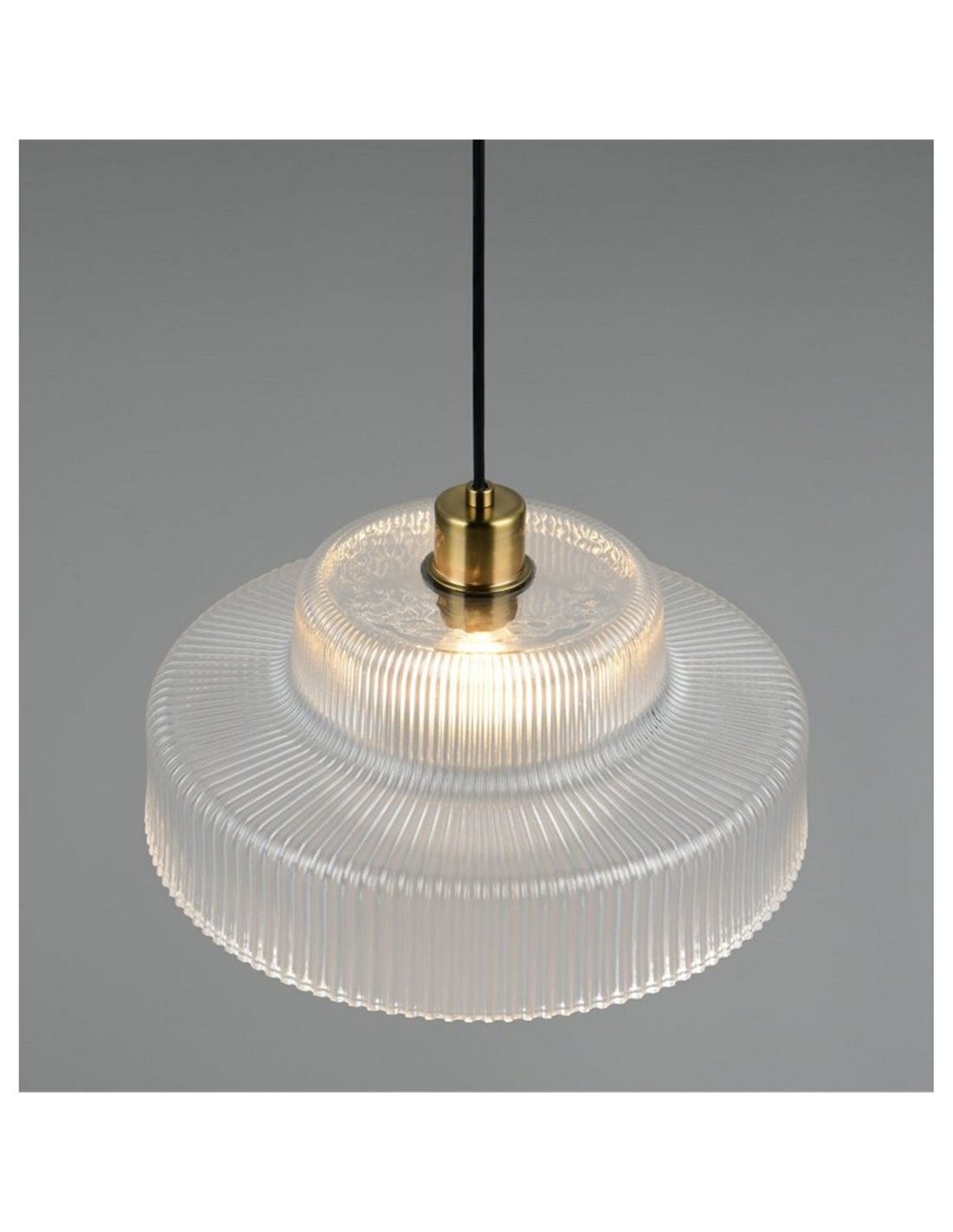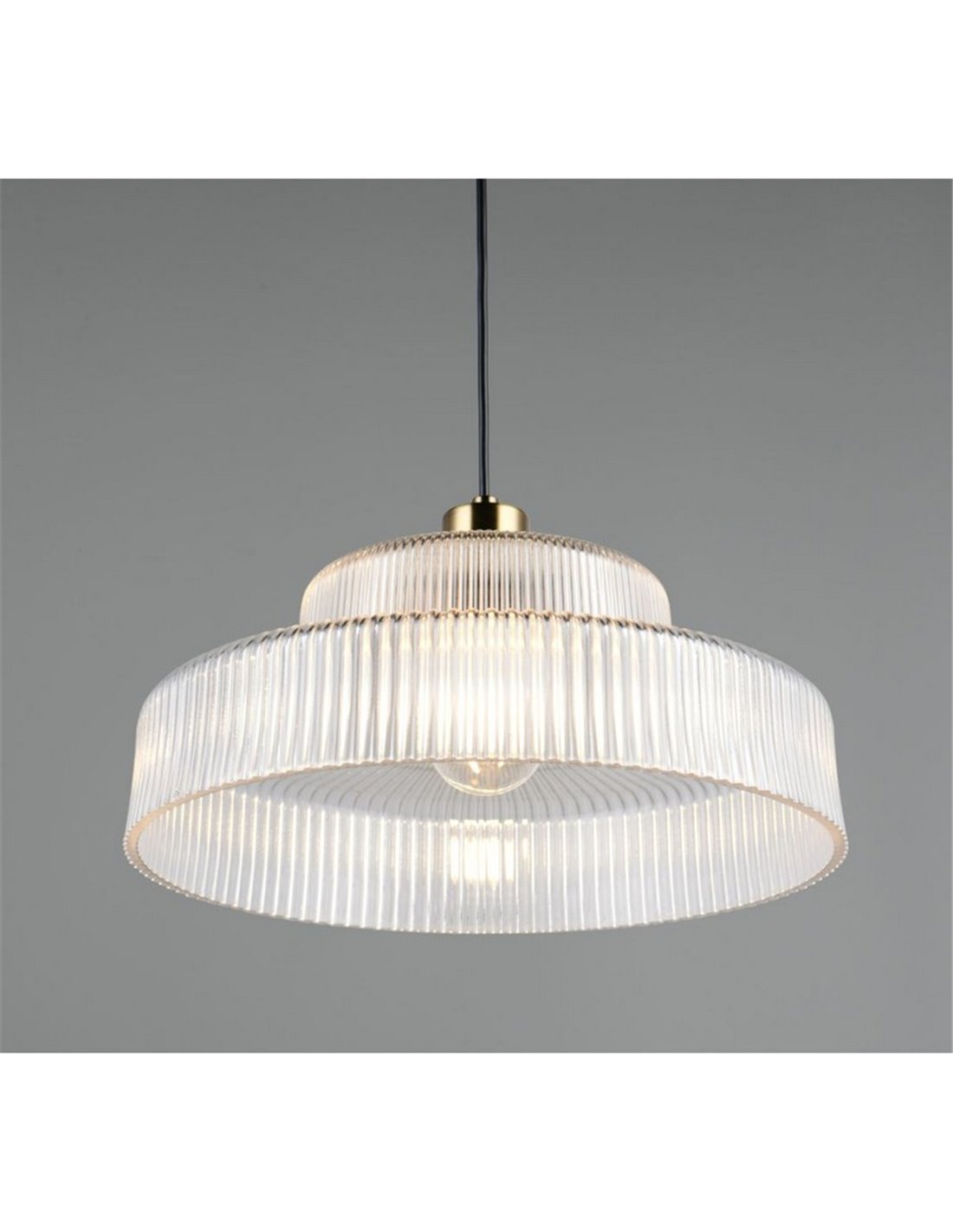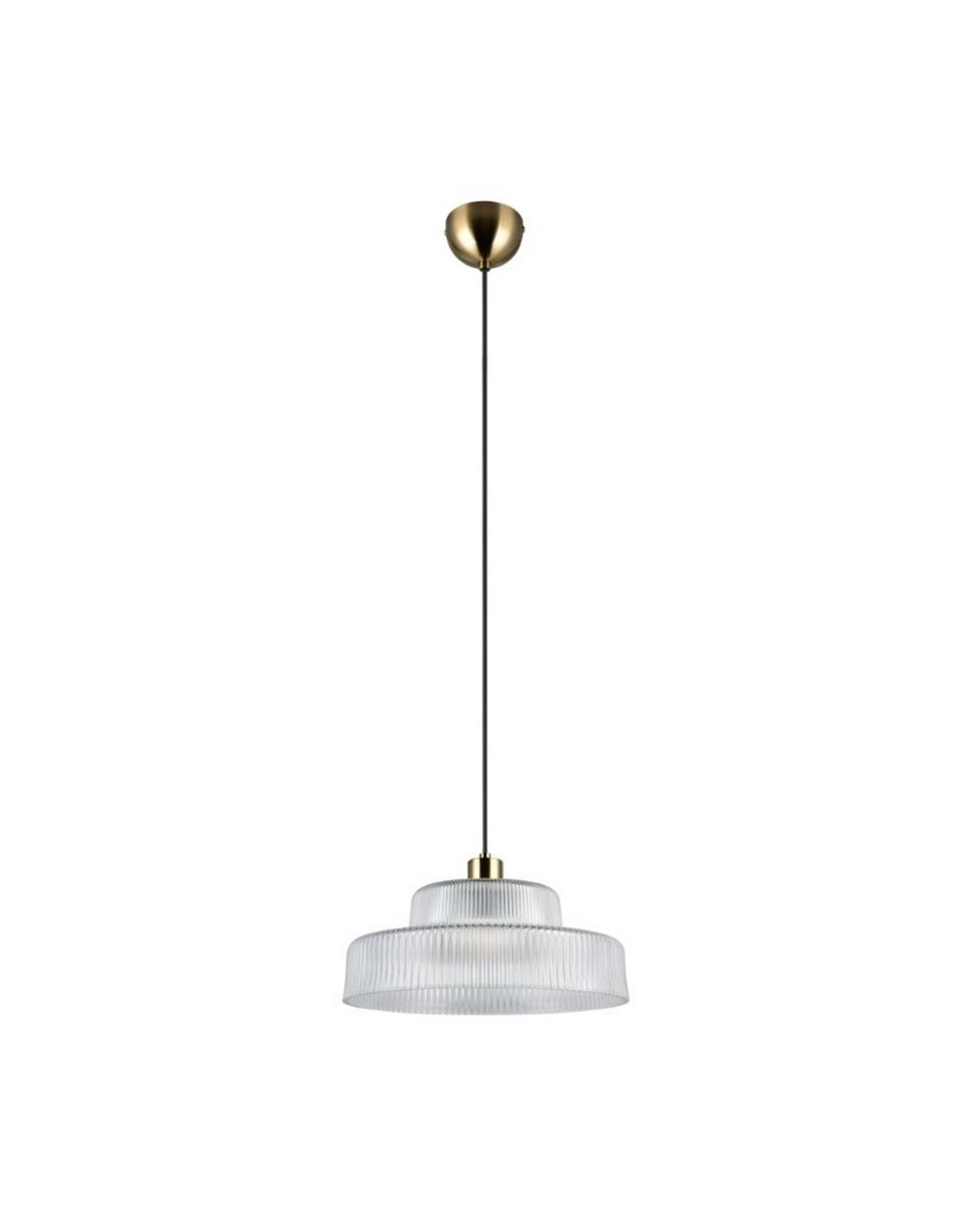 Deckenlampe ABELLA mit transparenter gewellter Glasabdeckung. Funktioniert mit E27 Glühbirne max. 10 W (nicht enthalten). Abmessungen: ↕ 150 cm | Ø 35 cm. Höhenverstellbar und mit Schutzart IP20.