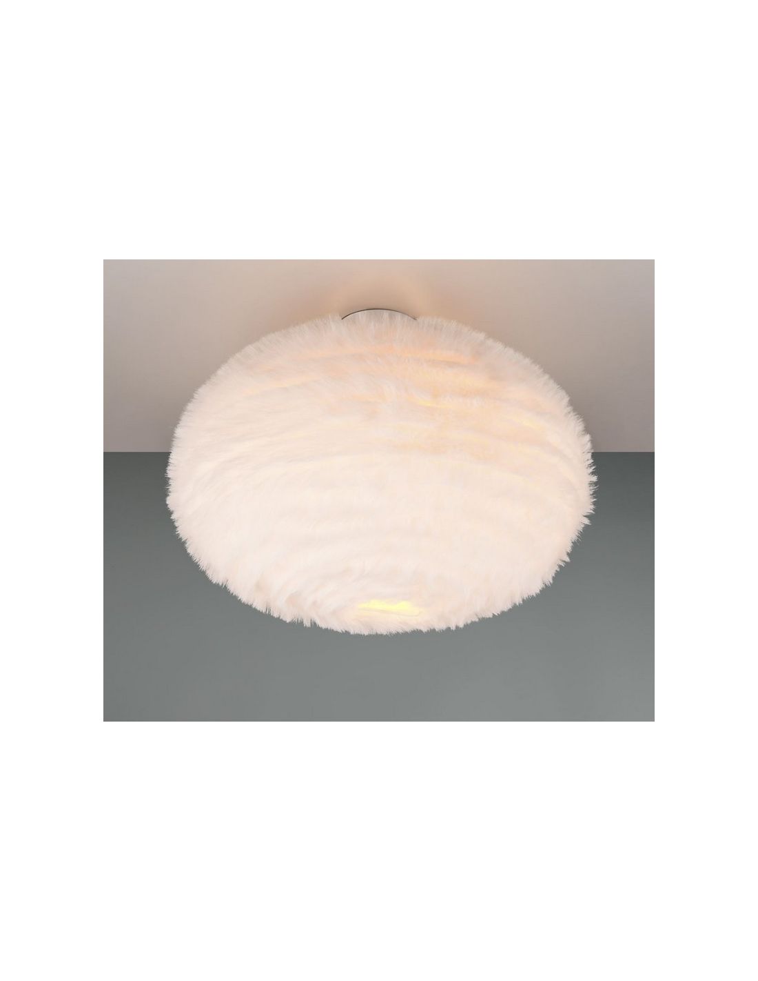 Die Deckenlampe FURRY mit Ø50cm besticht durch ihr flauschiges und gemütliches Aussehen. Perfekt für die warme Beleuchtung jedes Raumes, kompatibel mit 2 E27-Glühbirnen (nicht enthalten), schafft eine entspannende und moderne Atmosphäre. Ideal für Wohnzimmer oder Schlafzimmer.