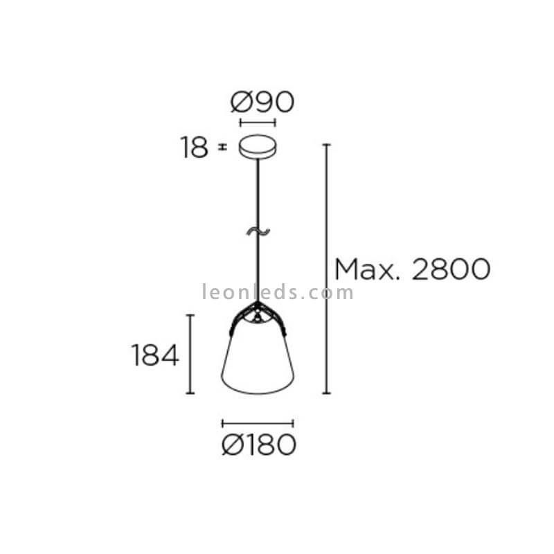 Alle Formate benötigen zur korrekten Funktion die Installation einer E27-Lampe (nicht enthalten) mit einer maximalen Leistung von 23W. Es ist eine metallische Hängeleuchte im Industriestil für Innenräume, da sie über einen Schutz gegen Wasser und Staub mit IP20 verfügt.