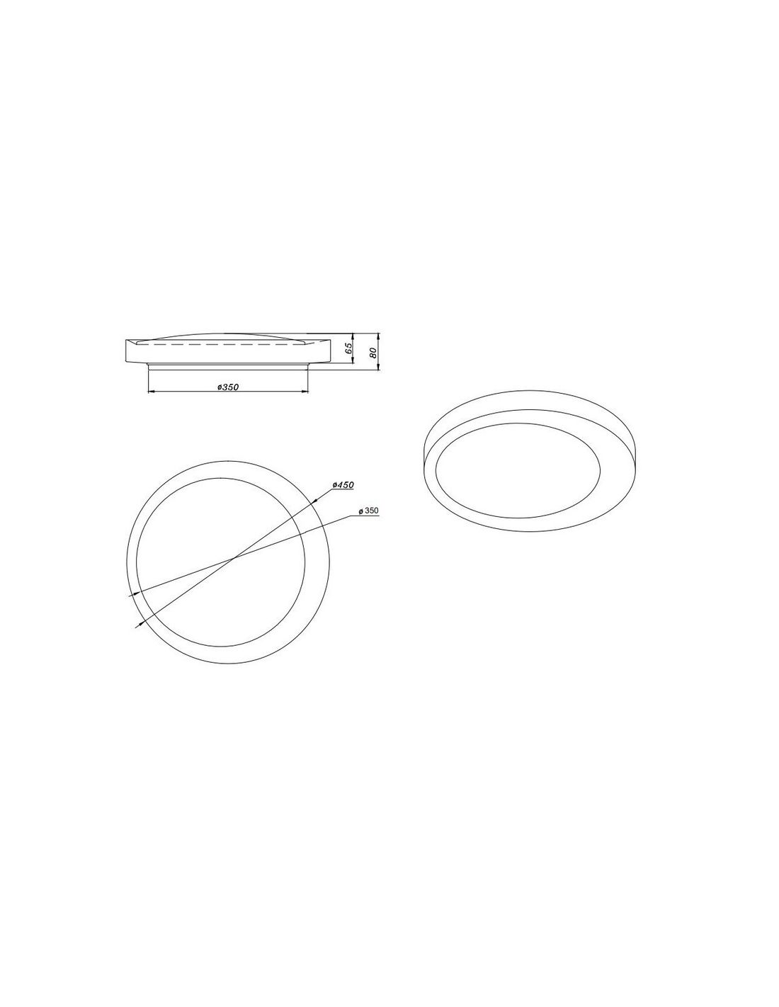 - Durchmesser von 45 cm: Größe, die perfekt zur gleichmäßigen Beleuchtung großer Flächen geeignet ist.